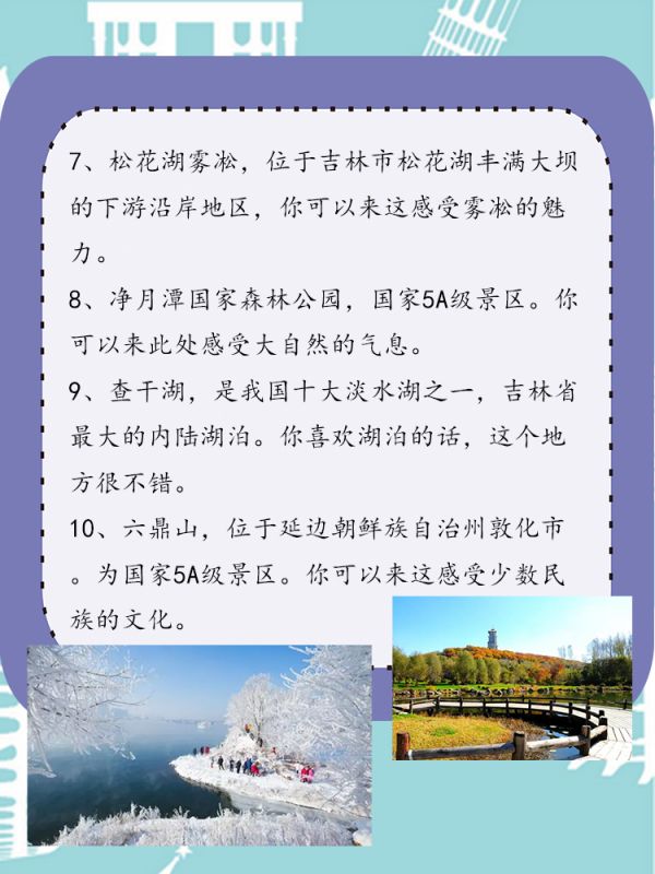 1、长白山景区,国家5A级景区,长白山是吉林的地理坐标。你可以来这感受北国的奥秘。