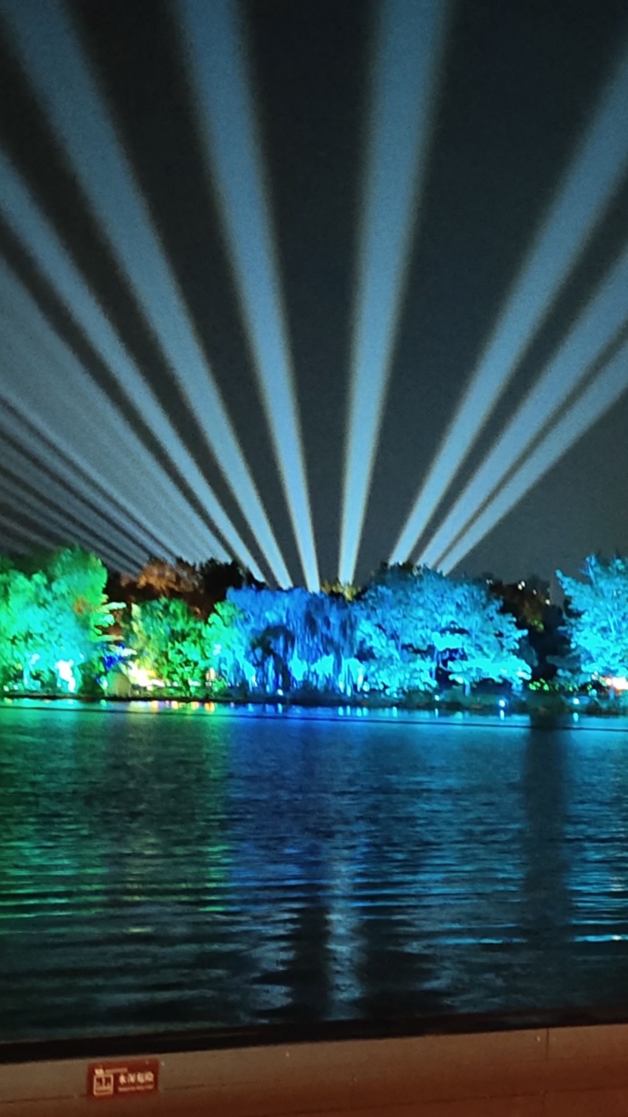 晚上湖面的灯光喷泉表演与游船夜游项目互动是一大亮点。