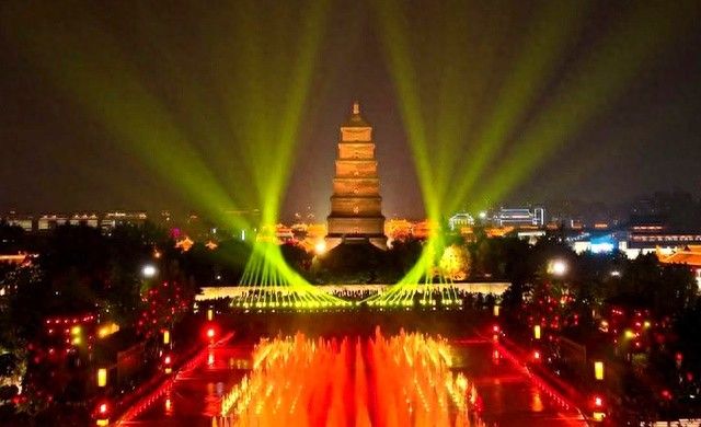 亚洲最大的音乐喷泉广场,夜间灯光与喷泉交相辉映,毗邻大慈恩寺(登塔需收费),是拍摄大雁塔全景的最佳位置。