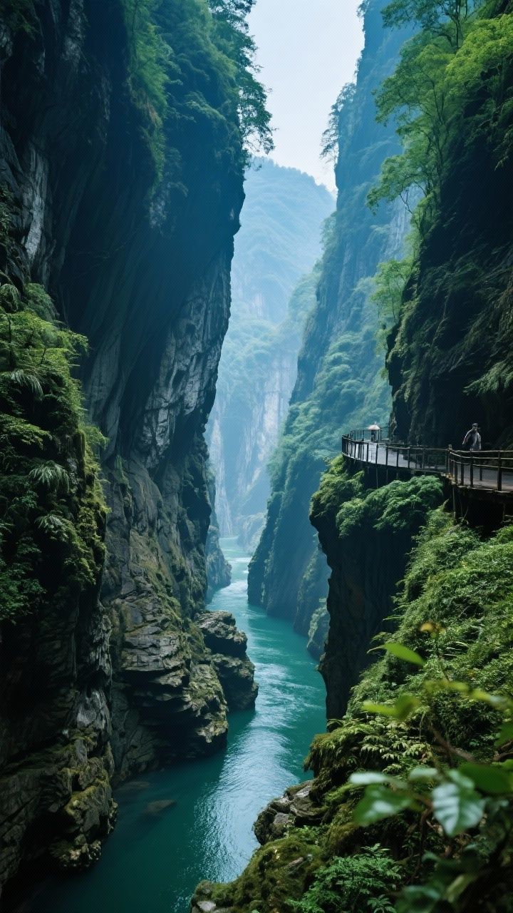 两岸峭壁千仞,瀑布如银线垂落,呼吸都是负氧离子的味道。