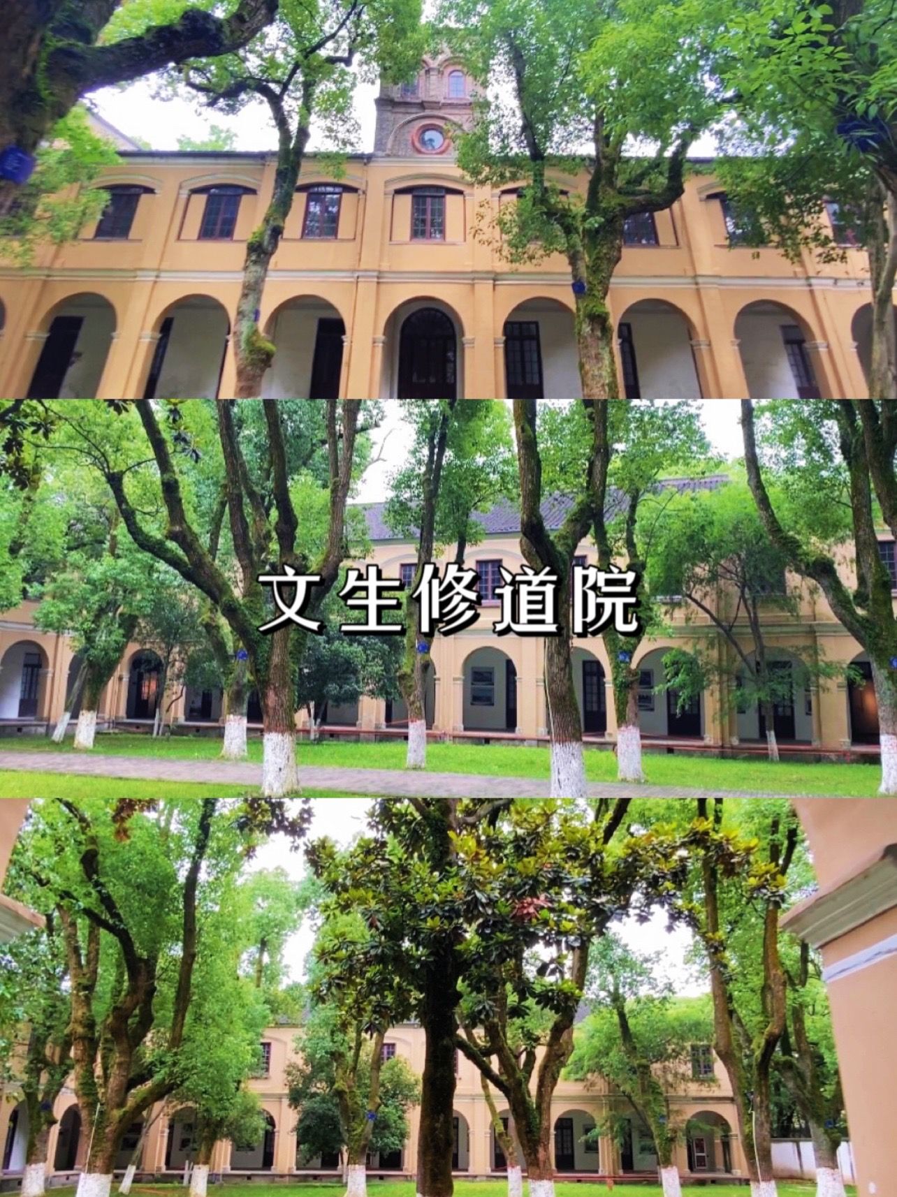 郁郁葱葱的香樟树种植在修道院内,小资复古情调的最佳拍照打卡点