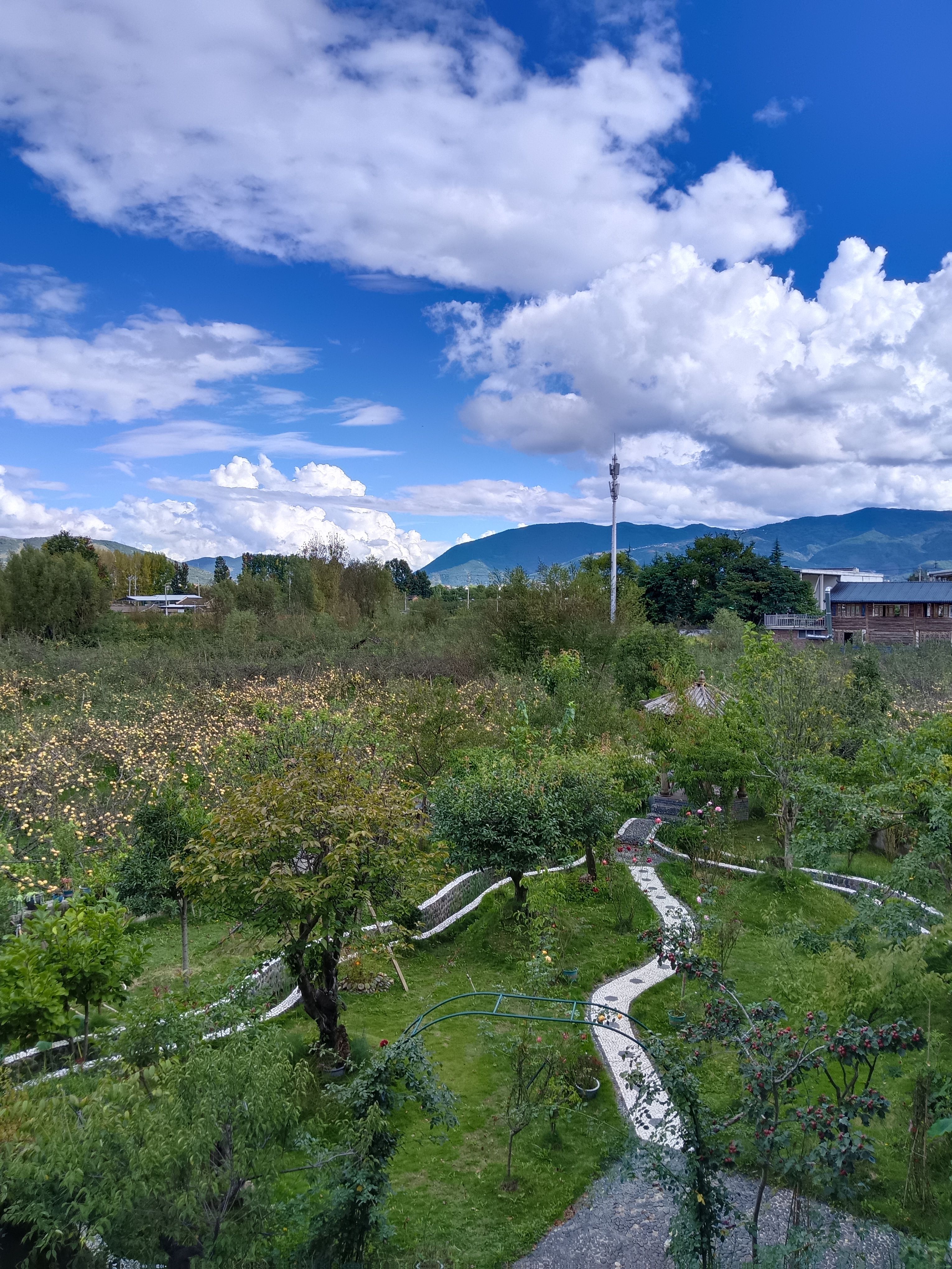 丽江的帅哥司机向我推荐的洱源县,真的非常好玩,风景不输丽江大理。洱源西湖泛舟,别有韵味。木瓜园民宿,站阳台上就是满目的蓝天白云,青山绿树,瓜海花园。洱海源头茈碧湖,每次去都是不同的感受,湖上白鹭翩翩起舞。早晨与傍晚,白鹭常常在田野上飞翔。去白沙古镇和凤羽镇的路上,路边全是格桑花和各种野花,还有金灿灿的稻田,沉甸甸的向日葵。连烤烟田里的烤烟花都很漂亮,还有清水池塘里的海菜花,跟洱海里一样又多又漂亮。梨园村真是世外梨园,与世外桃园一样的幽静美妙,千年的梨树还在结果实。有三百年历史的凤羽书院古朴清静,院子里那棵三百多年的古银杏枝繁叶茂,几乎垂地。三爷泉水清澈见底,毫无杂质,泉边有个小木勺,我连喝了三勺都不够,冰爽宜人。坐在泉水边古树荫下,半天都不想走。洱海的最源头弥苴河,十几公里的河岸都是近两百五十年的古树,我脚力有限,只走了两段,坐在古树下也是久久不舍离去。洱源地热国温泉规模很大,有三十多个不同功能的温泉池。我的身子不能泡温泉,吴师傅说可以泡脚啊,他请客让我去泡了一次,感觉好极了。地热国不限时间,可以泡玩一整天,有游泳池,有水上乐园。洱源还有一些需要爬山的景点,我暂时没法去玩。这边的人也是非常好,民宿老板和包车司机吴师傅,服务超级细致、周到。在大理爬楼梯和坡道多了,左膝关节微疼,吴师傅建议我去包草药,洱源中医院的医生也是特别好,到了就给我包药,包完开单付款,直接扫单子上的二维码即可,每次十分钟左右就搞定。中医院是全新的,草坪上有不少格桑花,还有两棵开黄花的树,漂亮。前两次是郭先生陪我去的,后面几次吴师傅承包了,真是从未想过在云南会有人陪我去医院。后面的两次,中医院居然给我免费了,真是让人感动。那天碧桂园的姐妹请兄弟姐妹去她家聚餐,他们让我也去了。我不好意思,先吃了饭过去,他们一直在等我开饭呢。她们做了一大锅土鸡汤和一大锅鱼汤,我吃了一点,味道很好。她家有个超大的露台,种菜养花,结了很多的南瓜、佛手瓜。昨天中午,大家又在咖啡屋一起包饺子吃,而且是用柴火烧的,好香啊。洱源,让我有家的感觉。