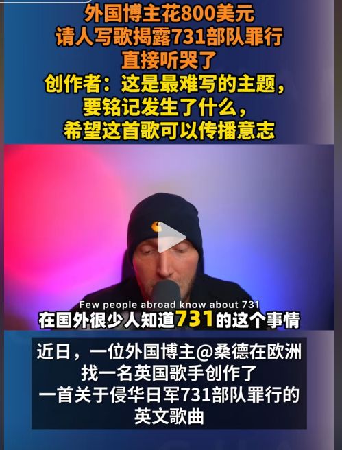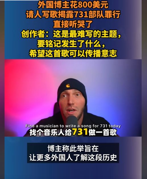 (主要信源:观察者网 —— 外国博主花800美元,请人写歌揭露731部队罪行,直接听哭了)