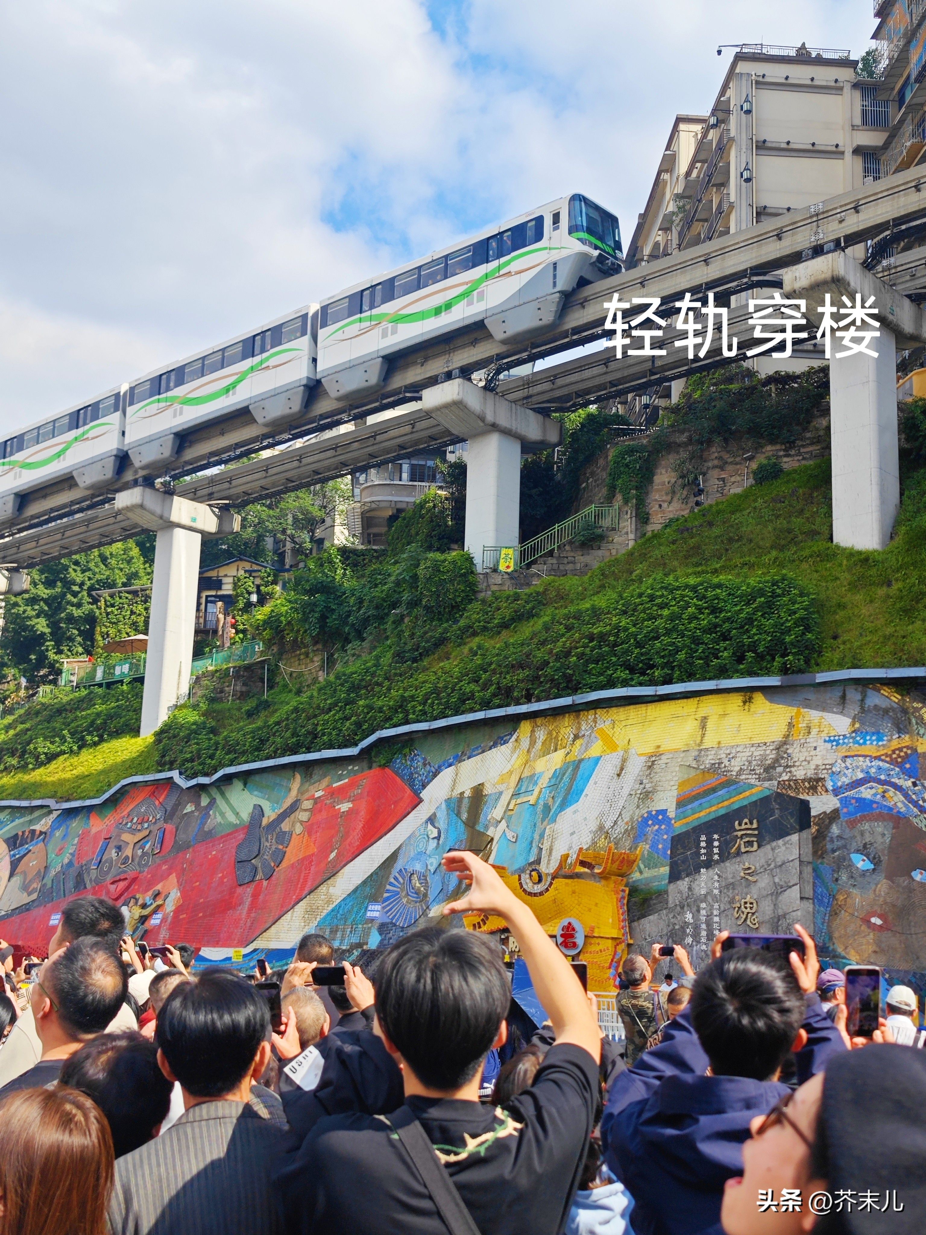 接着往下走去李子坝,一路边走边玩,在李子坝看轻轨穿楼,看轻轨穿楼的人特别多,在路边等着轻轨的到来。