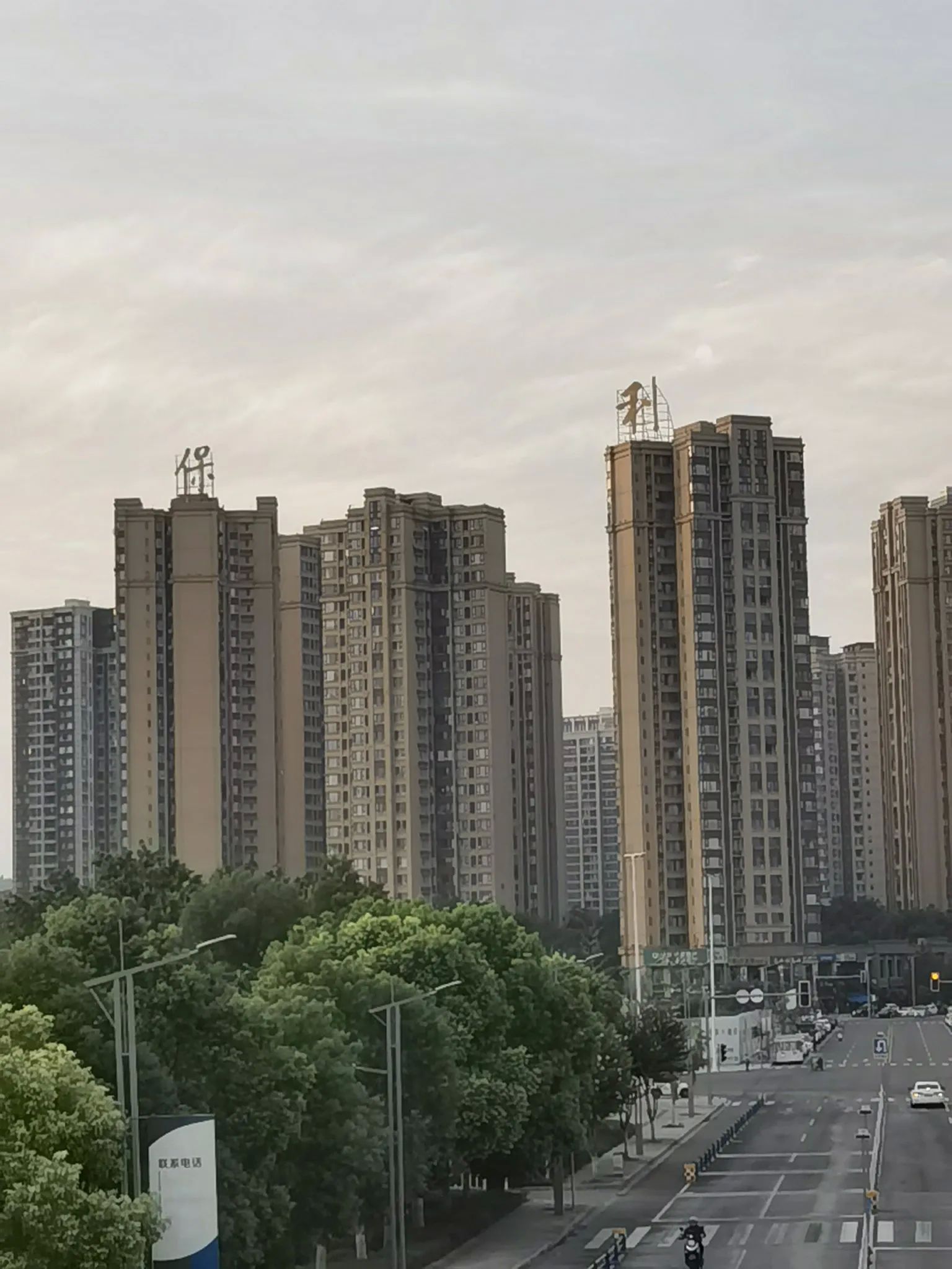 为了印证我在人行天桥上看到的东方红太阳升,我还在人行天桥上,随手拍了一张保利城国际城的镜头。