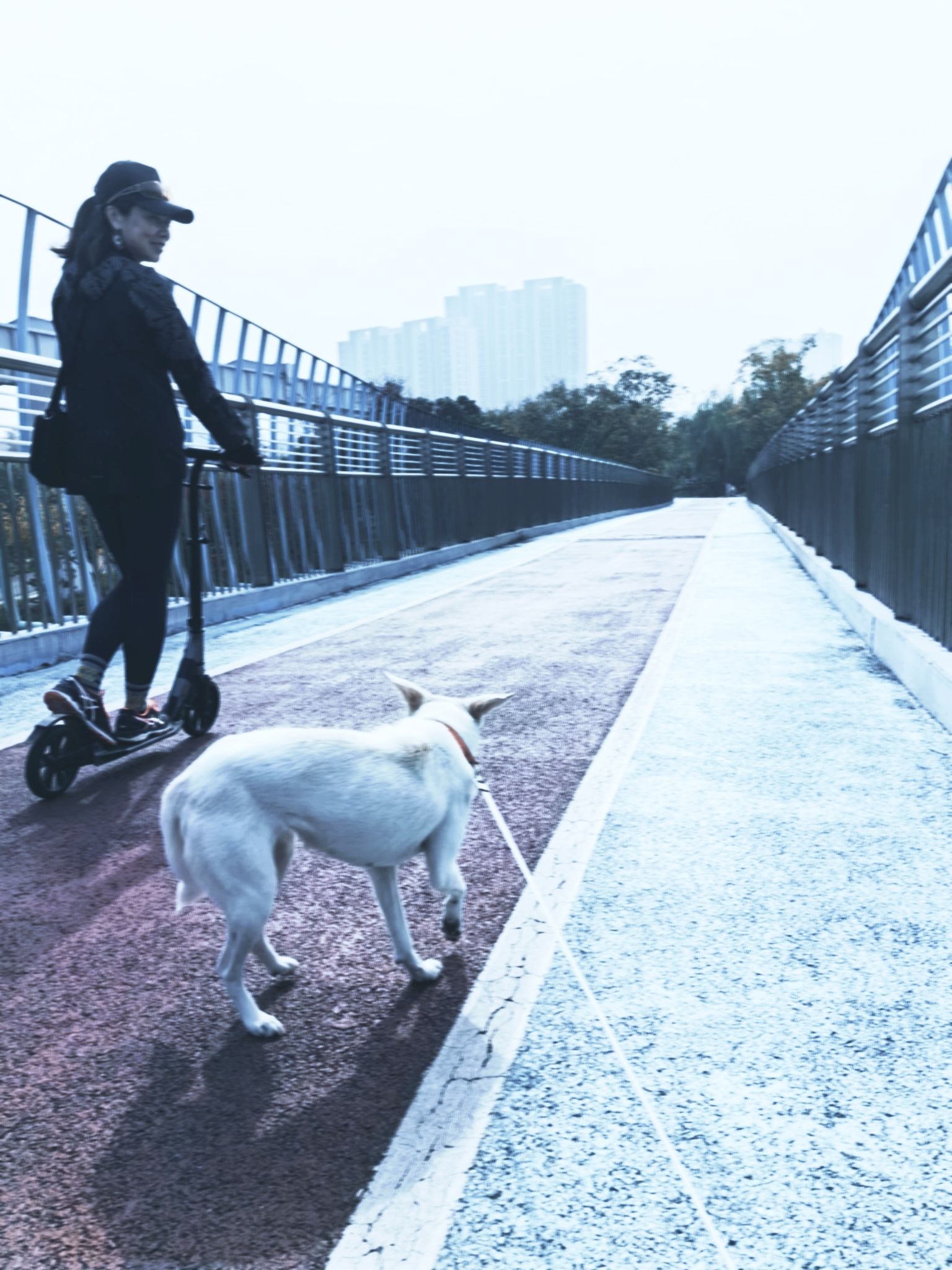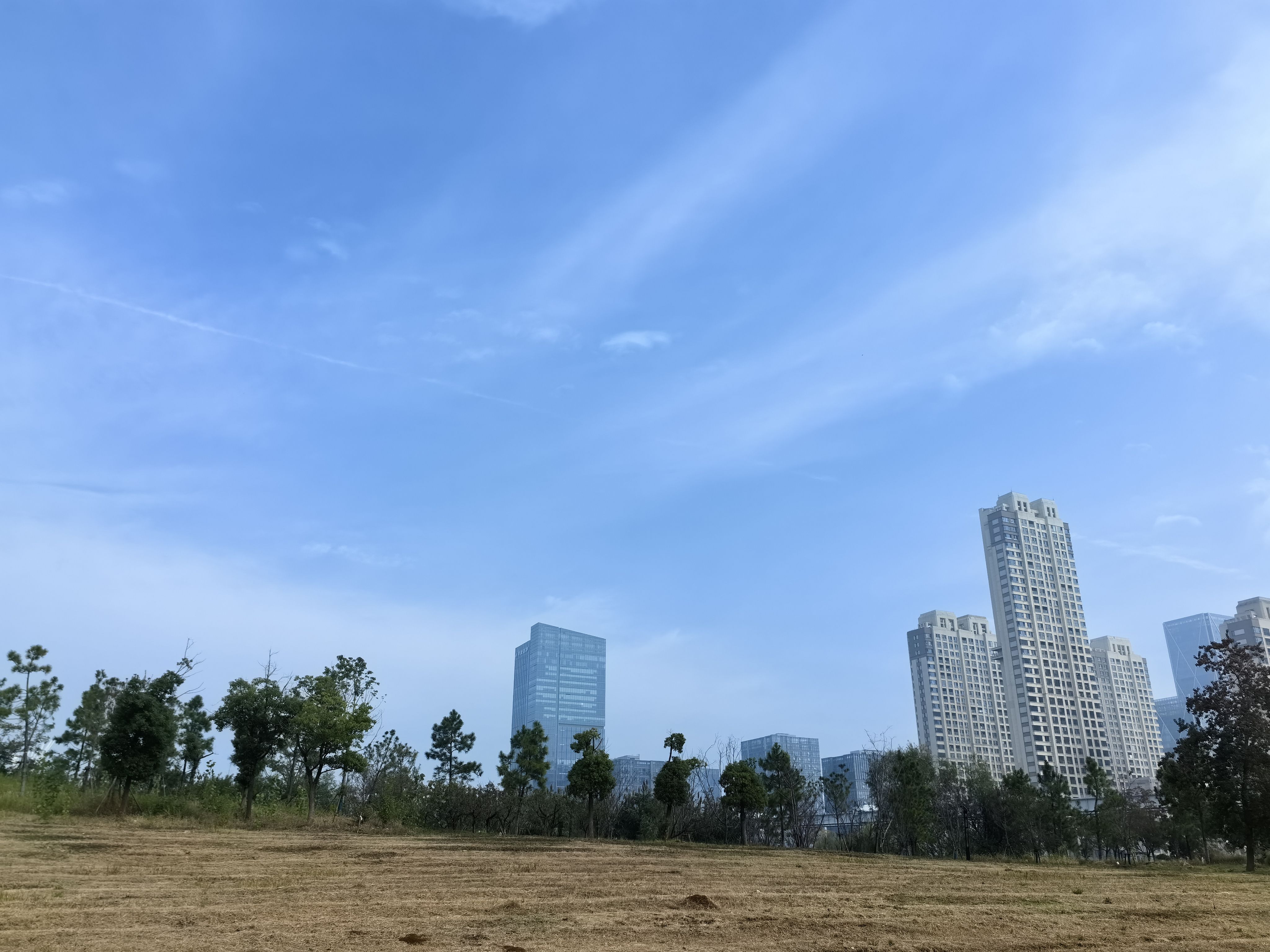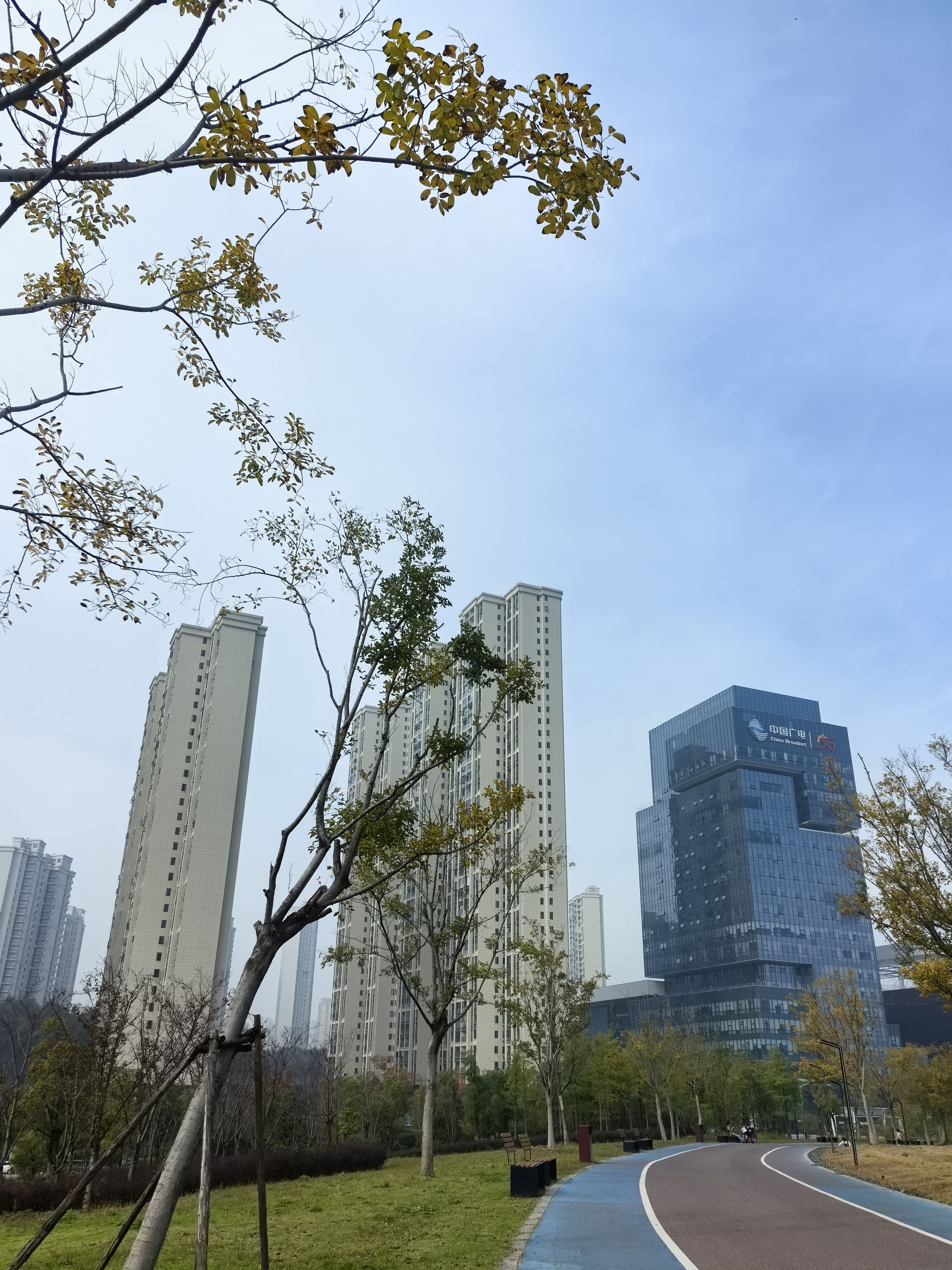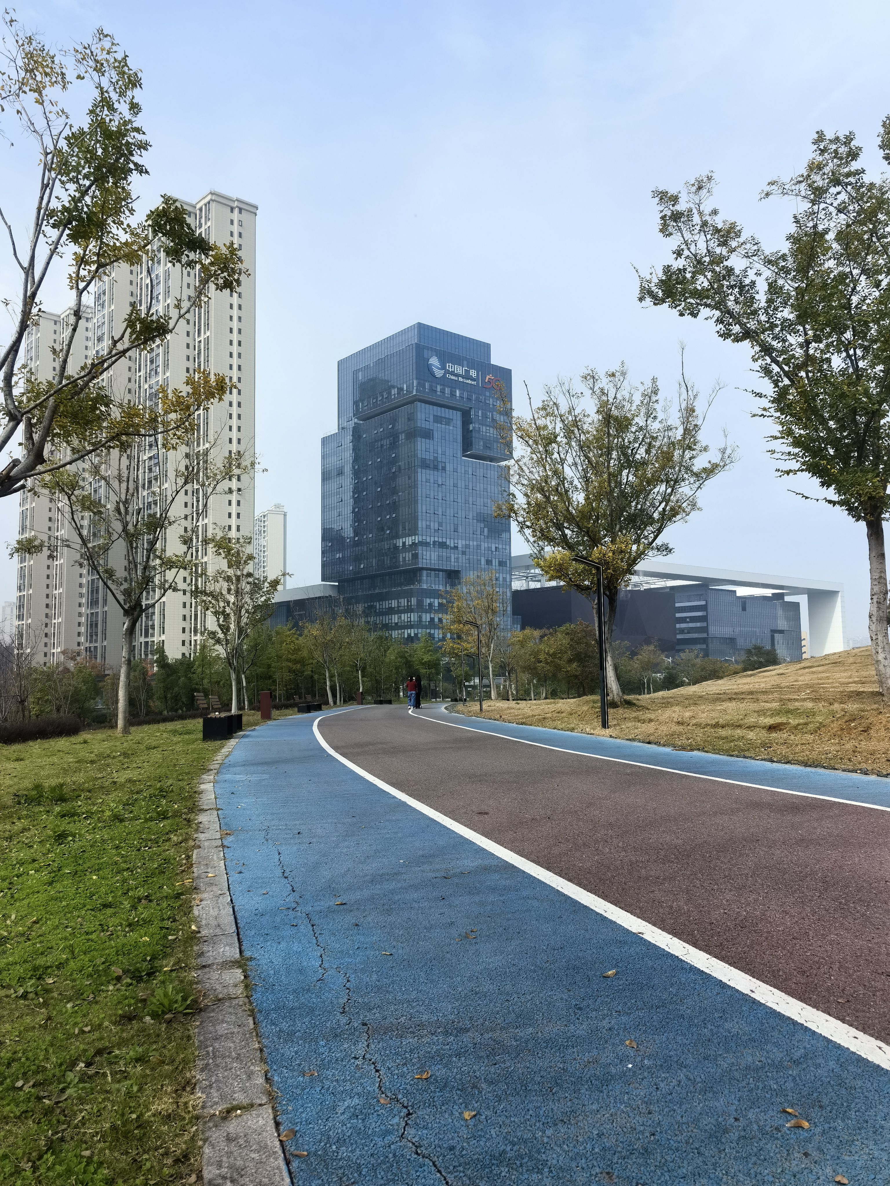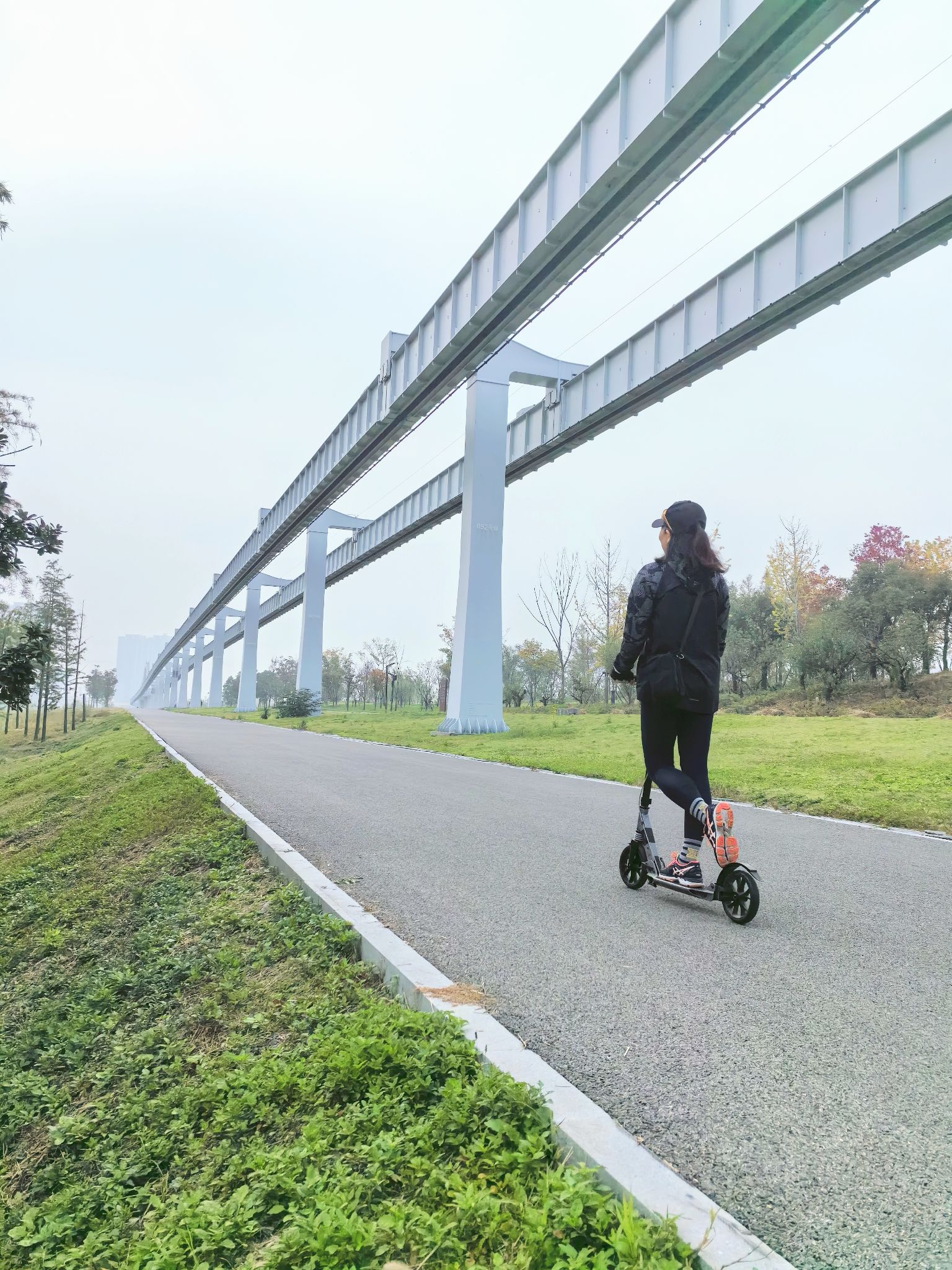 第四,武汉生态大走廊,可以跑步,散步,骑车,滑板,还可以呼朋引伴一起活动,在秋风里来雨里去。这边都是塑胶跑道,对于膝盖非常友好,蓝天下就是武汉的空轨。