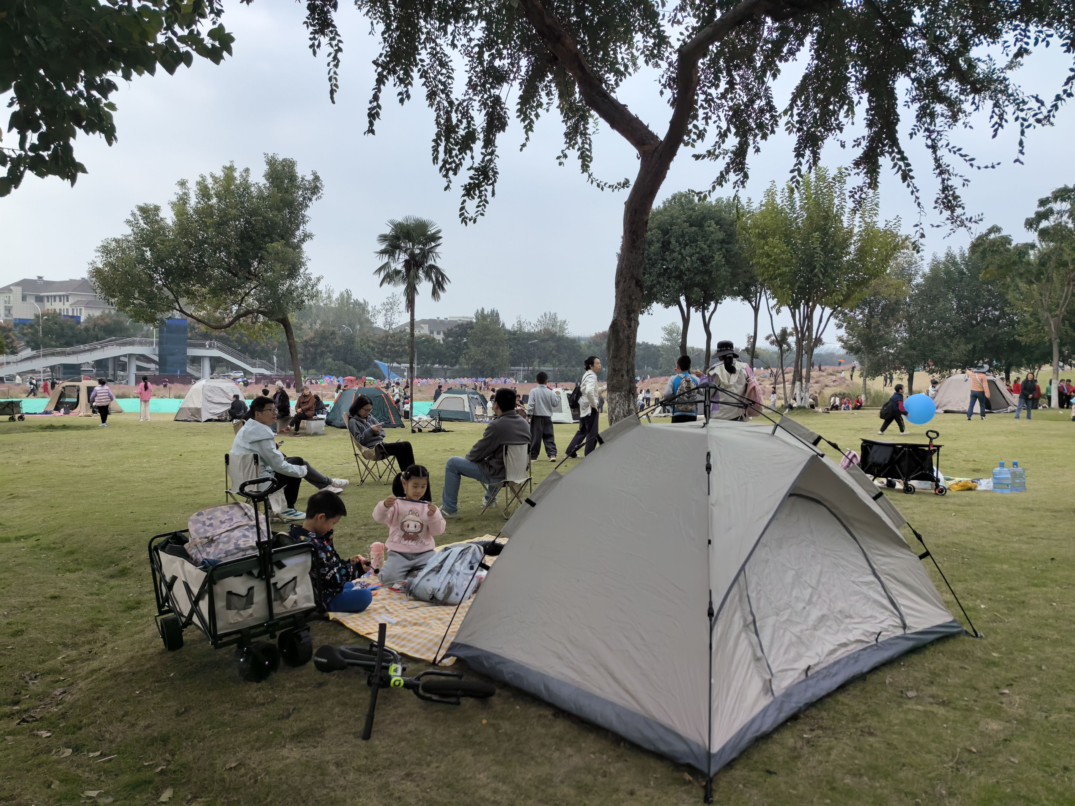 武汉人都太爱讲究了,再不爱将就着去踏秋了,自从去了二妃山看了半谢不谢的粉黛子,我好多朋友都建议我以后少去二妃山,我说你是不知道二妃山人山人海,来来往往都有狗,都有小孩吃泡泡,武汉人真的不讲究啊,随便找个地方就坐下来,天幕随便挑一个地方就挂起来,呼啦啦都会拖家带口,带着欢乐的小狗,大狗,甚至哈士奇二哈啊,高大的狗阿拉斯加啊,萨摩耶都带上了,那些大型狗也蛮听话啦懂事啦,话说这二妃山近年来特别吸引武汉人打卡,也特别吸引外地人慕名而来二妃山打卡,看看某书还有某点评上好多博主来二妃山拍照,就是拍个二妃山的落日或是晚霞,也是大片了,即便不露出脸,就一个背影,或是几个人的背影,高矮胖瘦都可以拍到极品照片,再来一棵树,一颗绝美的树,都是大片,武汉人还把二妃山叫做“武汉的阿勒泰”。