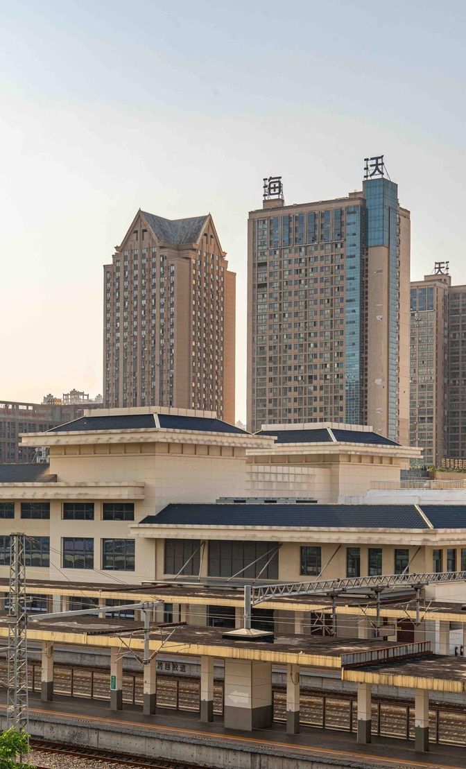 然后来到了淮南站的月台,穿过地下通道,走到新华钟书苑小区的天台上,这个视角很独特。