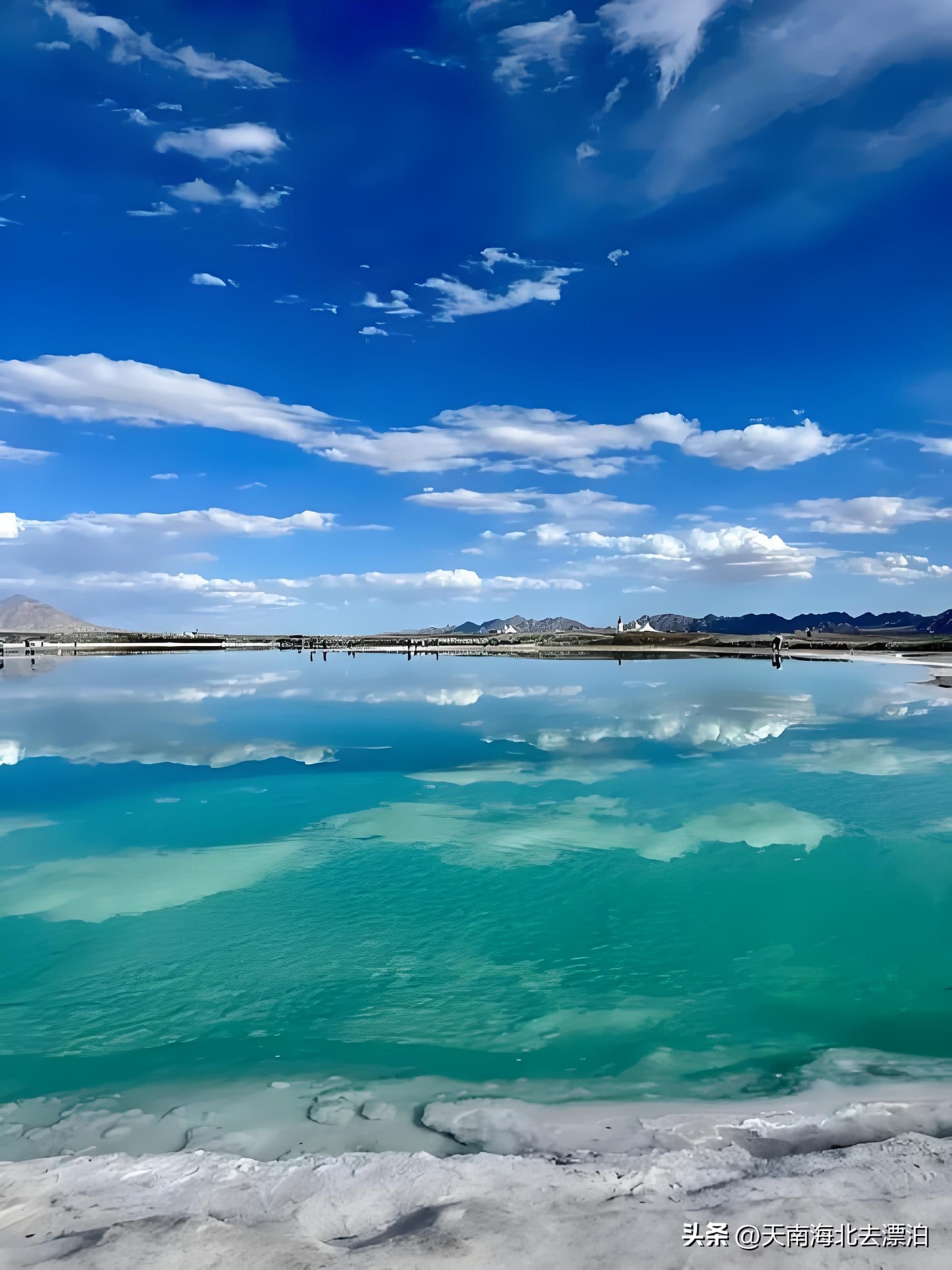 •下午:游览此行亮点——茫崖翡翠湖。这个硫酸镁亚型人工盐湖面积约26平方公里,湖水呈现出各种绿色,美得让人恍如仙界。景区按车收费,每车20元。可以拍摄玻璃船照片(30元/人),或者寻找"大地之树"等独特拍摄机位。