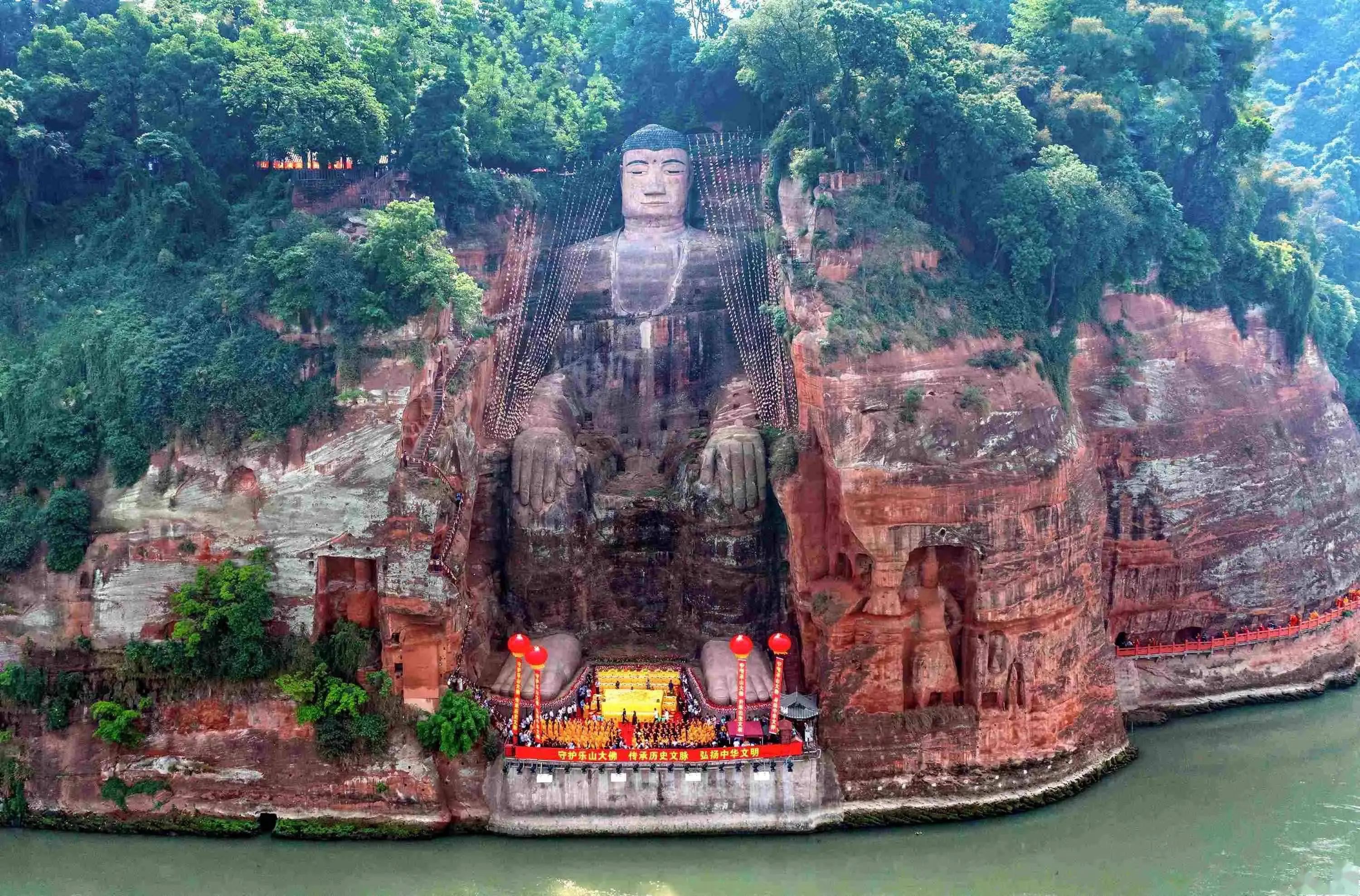 **3. 乐山大佛:** 世界上最大的石刻佛像,依山而建,气势恢宏。大佛庄严肃穆,与山水融为一体,令人叹为观止。