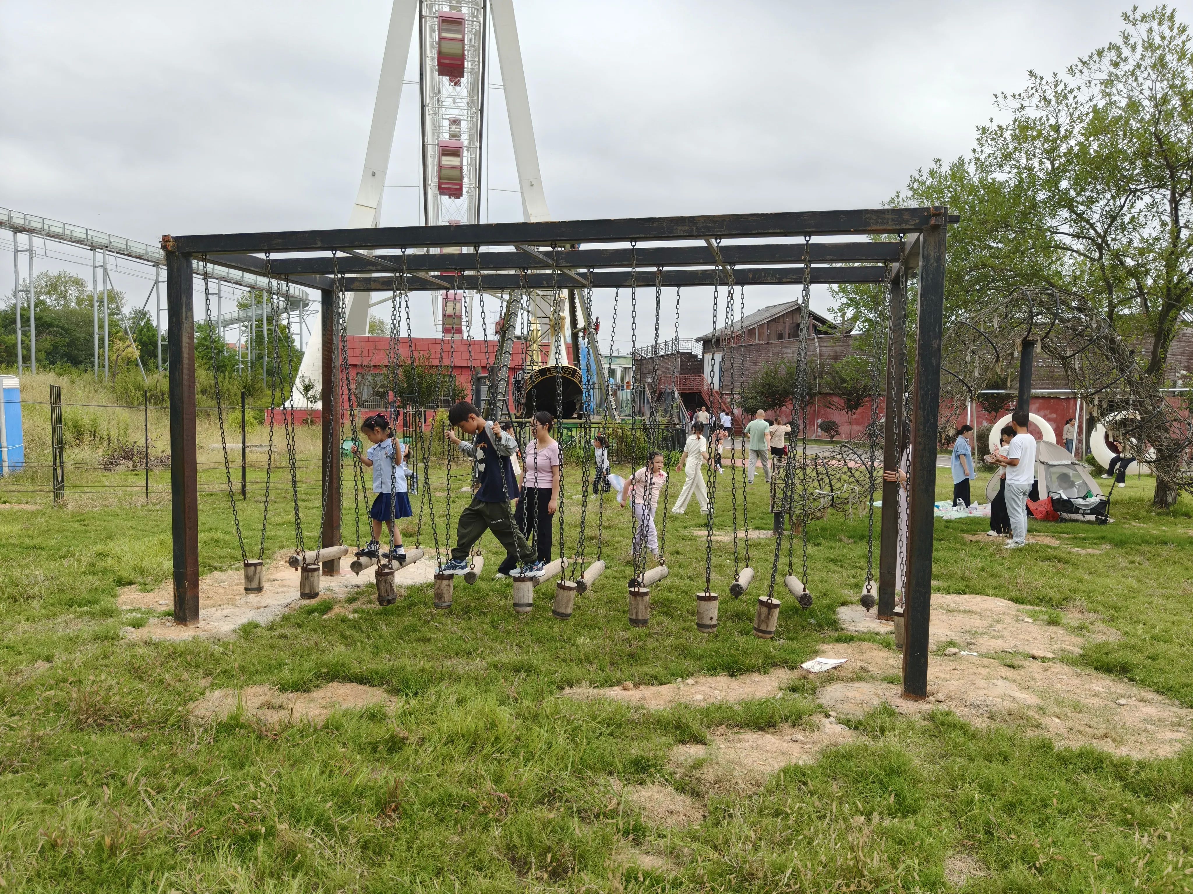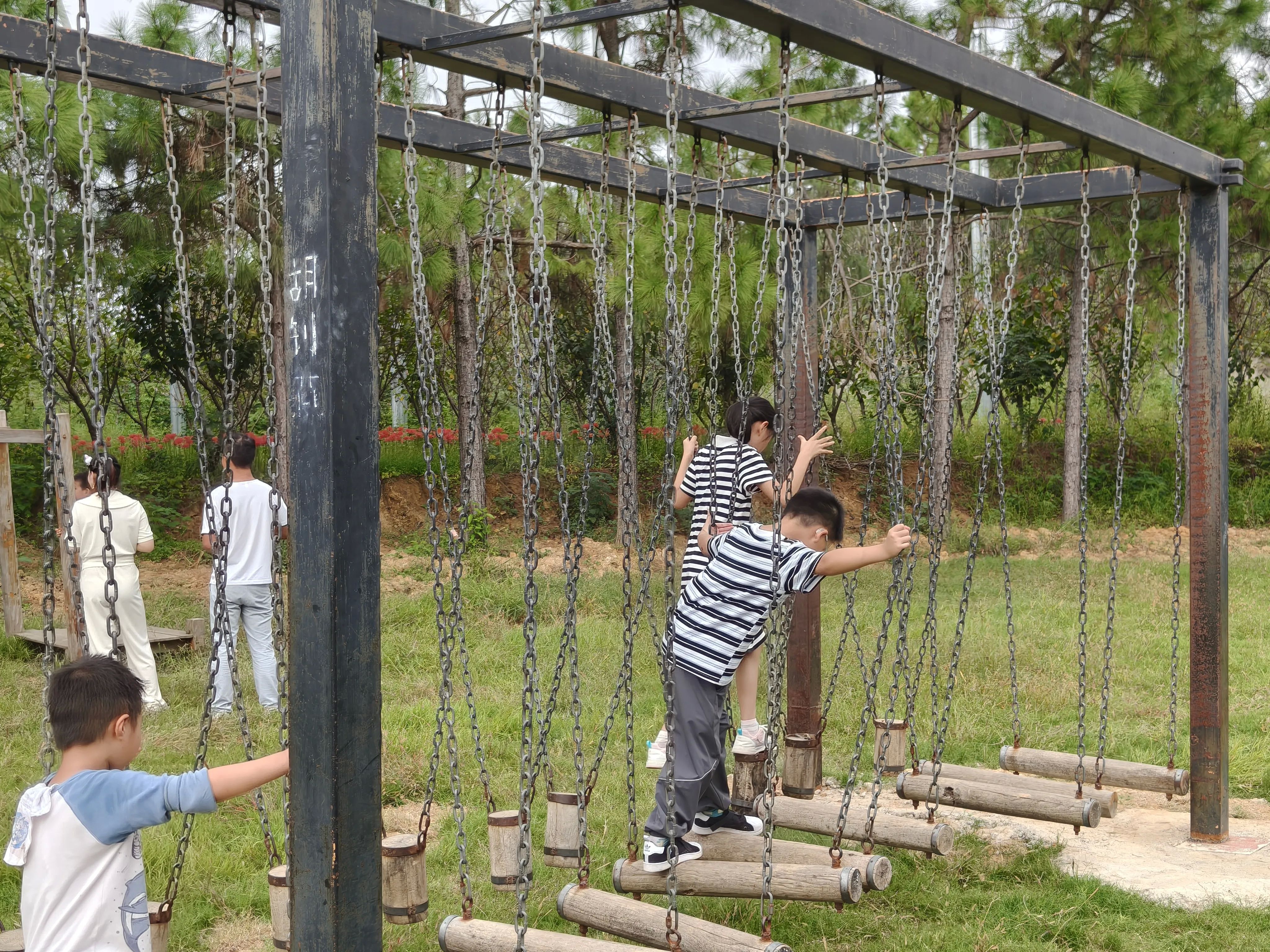 景区里还有个小动物园,里面的兔子特别可爱,好多孩子都在那喂兔子,兔子后来都吃太饱了,四仰八叉的躺在那,任你如何递胡萝卜,连看都不看一眼,怪不得所有的景区兔子都长胖胖的。走过动物区,旁边还有个儿童拓展区,有很多攀爬设施,貌似最近去的几个景区里面都有类似的设施,孩子们好像乐此不疲,每每看到都会去玩,而且是一玩就是大半个小时。