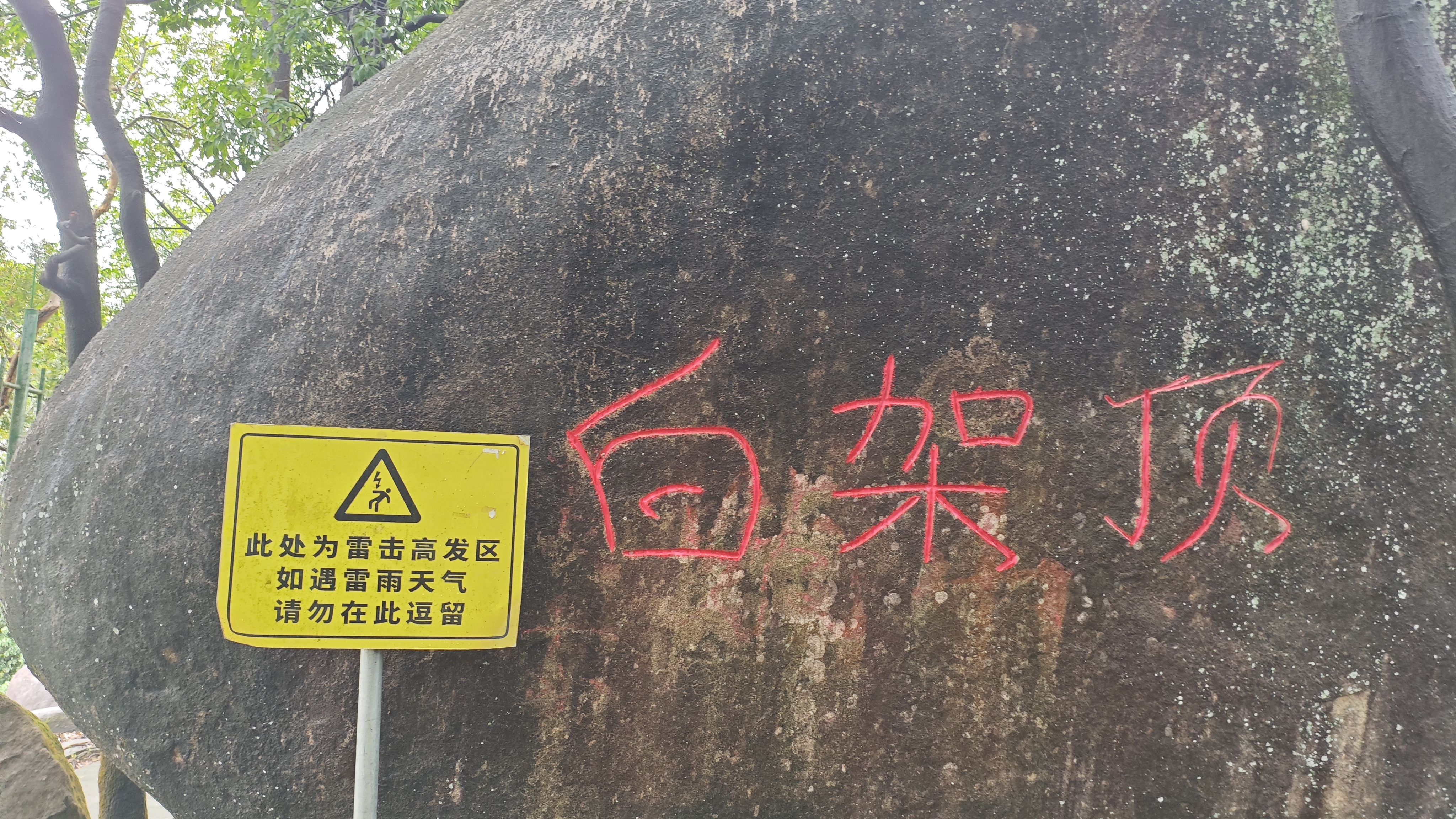 白架顶也有几块大石头,人们刻了“火炉山第一峰”“白架顶”在石头上,不过刻的线条很纤细,看起来不是官方机构刻的,可能是民间人士所为。
