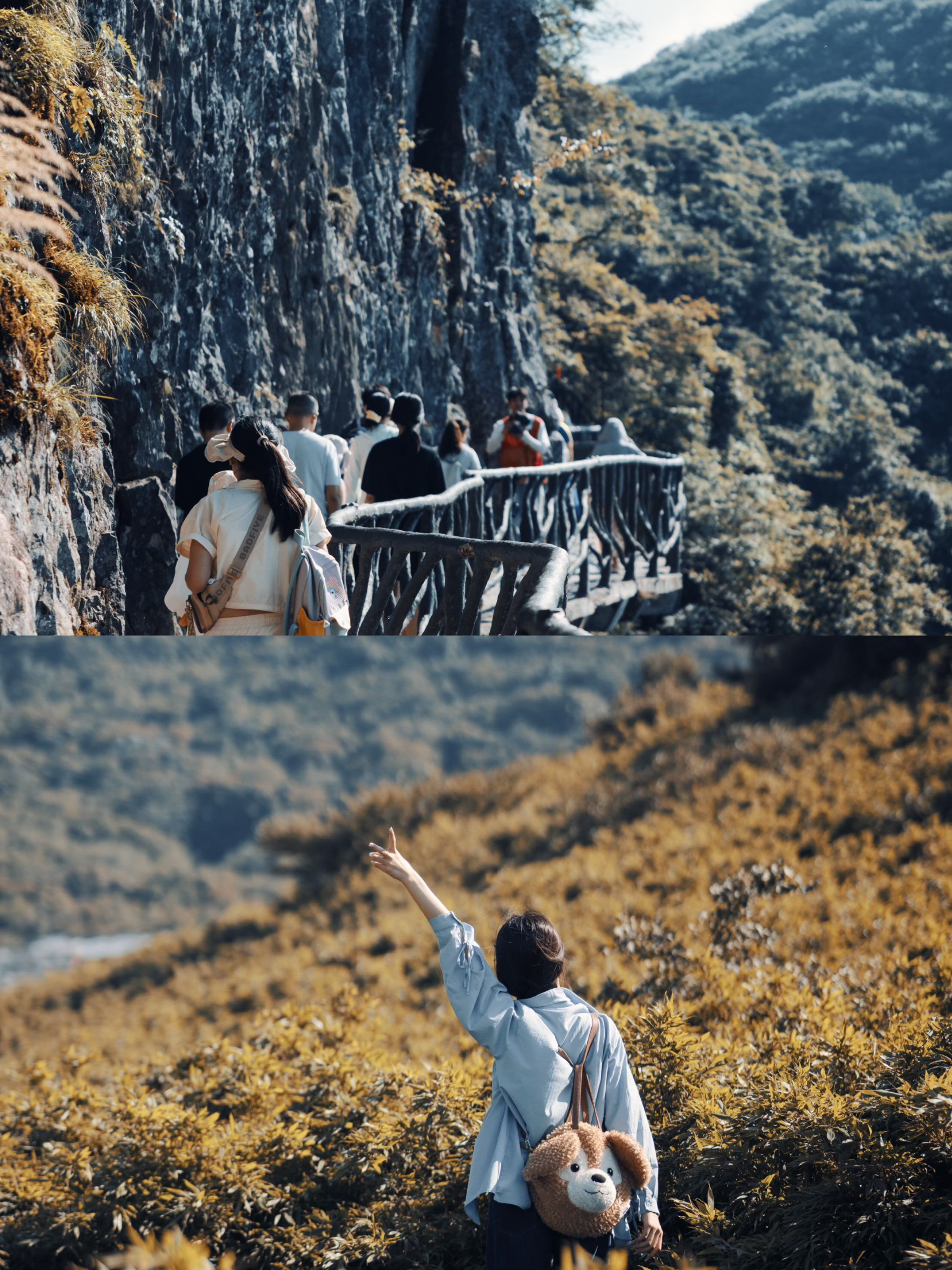 • 山顶核心景:金龟朝阳(天然龟型山体祈福)、古佛洞(溶洞+祈福文化,罗汉像超震撼)、云端步道(悬崖边看群山和南川城,视野炸裂)…每个都想疯狂拍照!