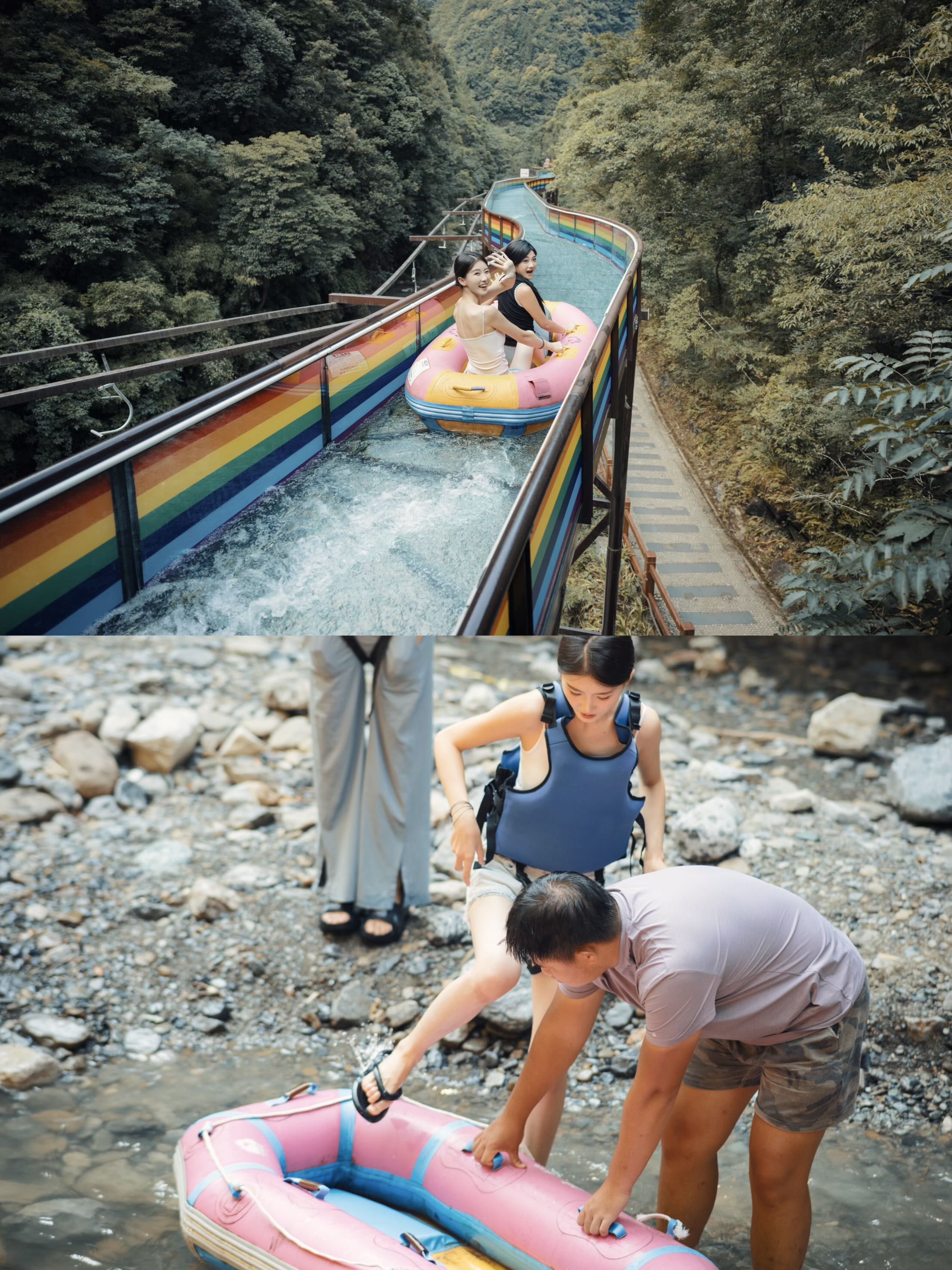 • 亲水乐园:西坡山下碧潭幽谷里,溪降、皮划艇、玻璃滑道…玩水项目多(单独收费),夏天耍水太快乐啦!