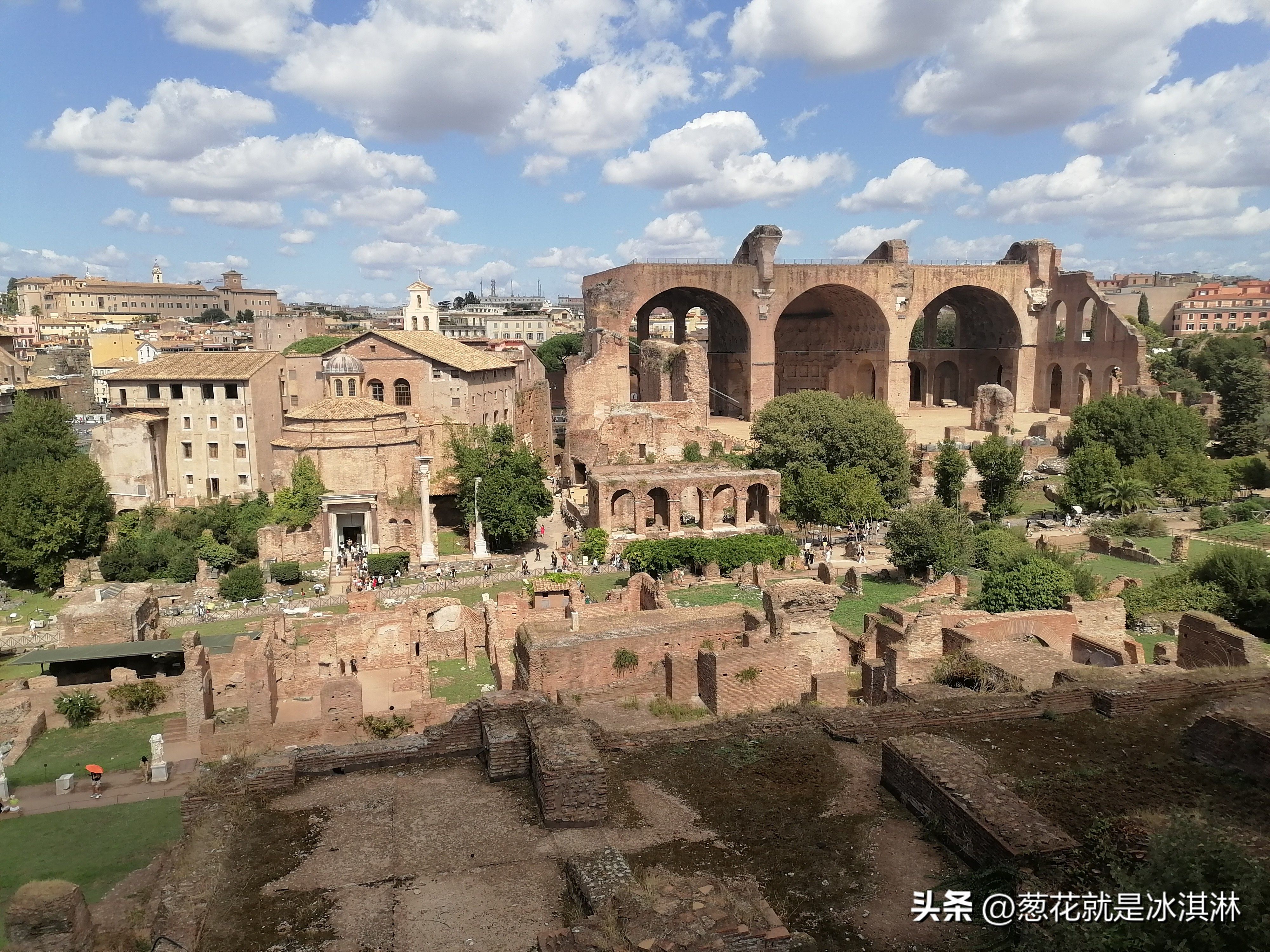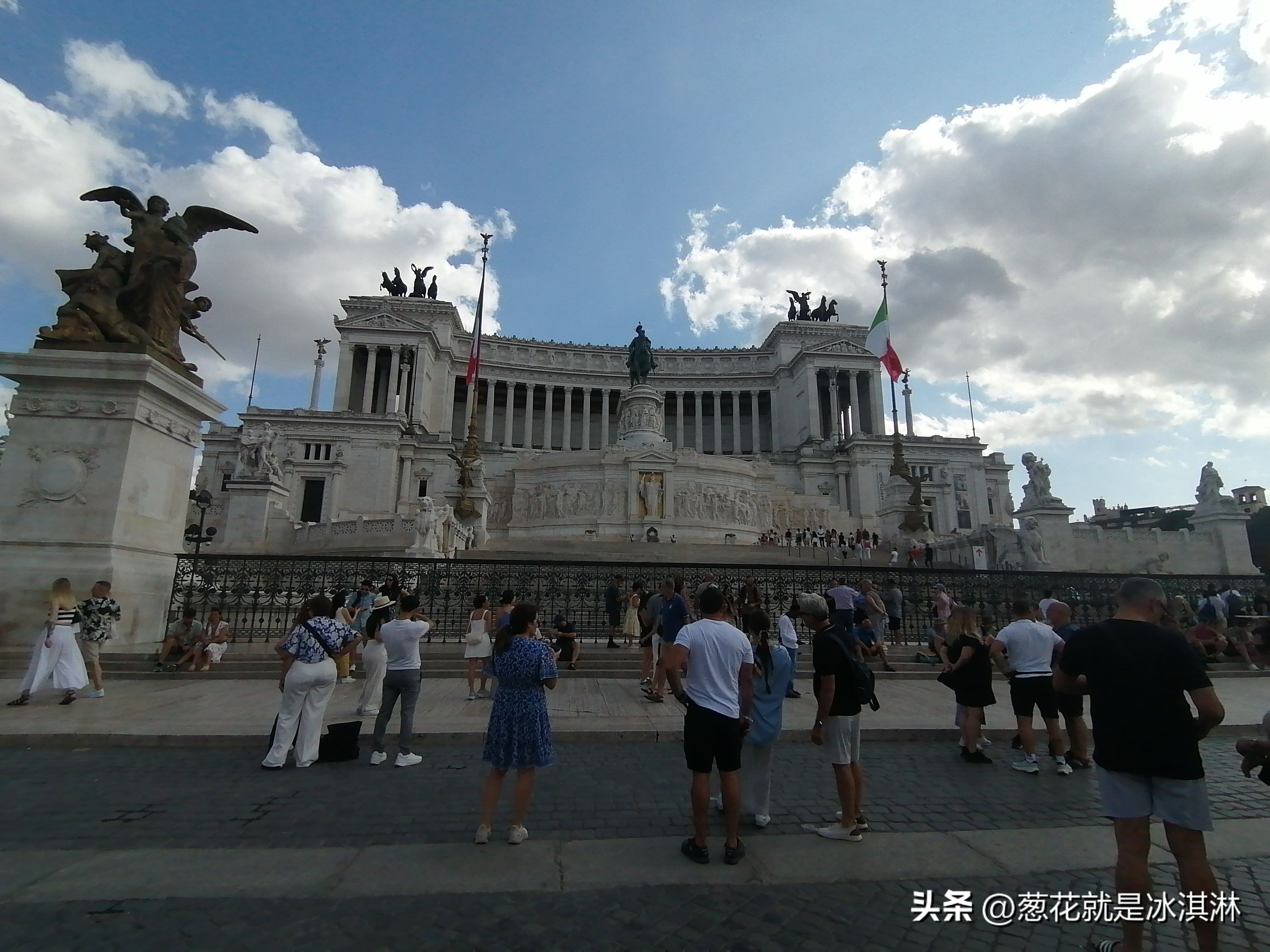 早餐后,搭乘地铁,我们直奔古罗马斗兽场。第二天我们主要以罗马斗兽场为主要游览范围,附近古罗马广场遗址,凯旋门等,第一次发现罗马斗兽场里的简介说明有意大利语,英语,中文三种。我们从书本文字的古罗马找对应的古遗址,心中感叹不已。大半天的游览,主打一个看不完,太多了,因为哪哪都是古迹。所以丫头说,你们能看到哪里就看哪里。出了古罗马遗址范围,我们走到威尼斯广场,走走坐坐,对于常年呆在英国的丫头来说,她觉得太热。而我们从南昌过来,除了有点晒,还蛮舒服。