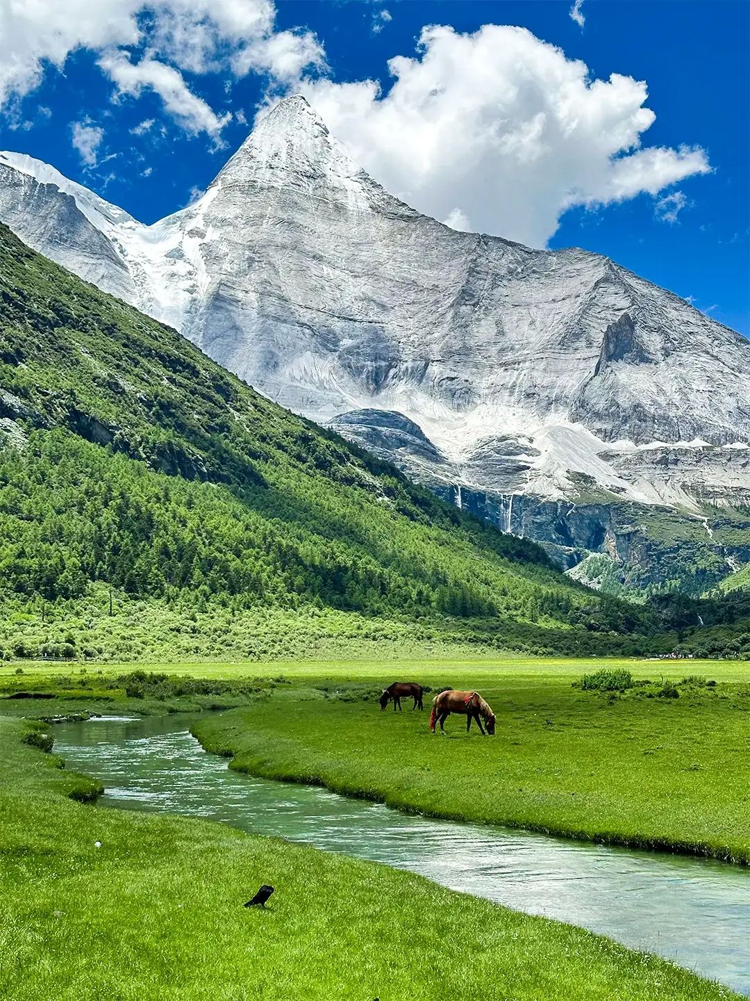 - 稻城亚丁:被称作“最后的香格里拉”,有壮丽的三神山(仙乃日、央迈勇、夏诺多吉),还有牛奶海、五色海等高山湖泊,草甸、灌木在秋季色彩丰富。