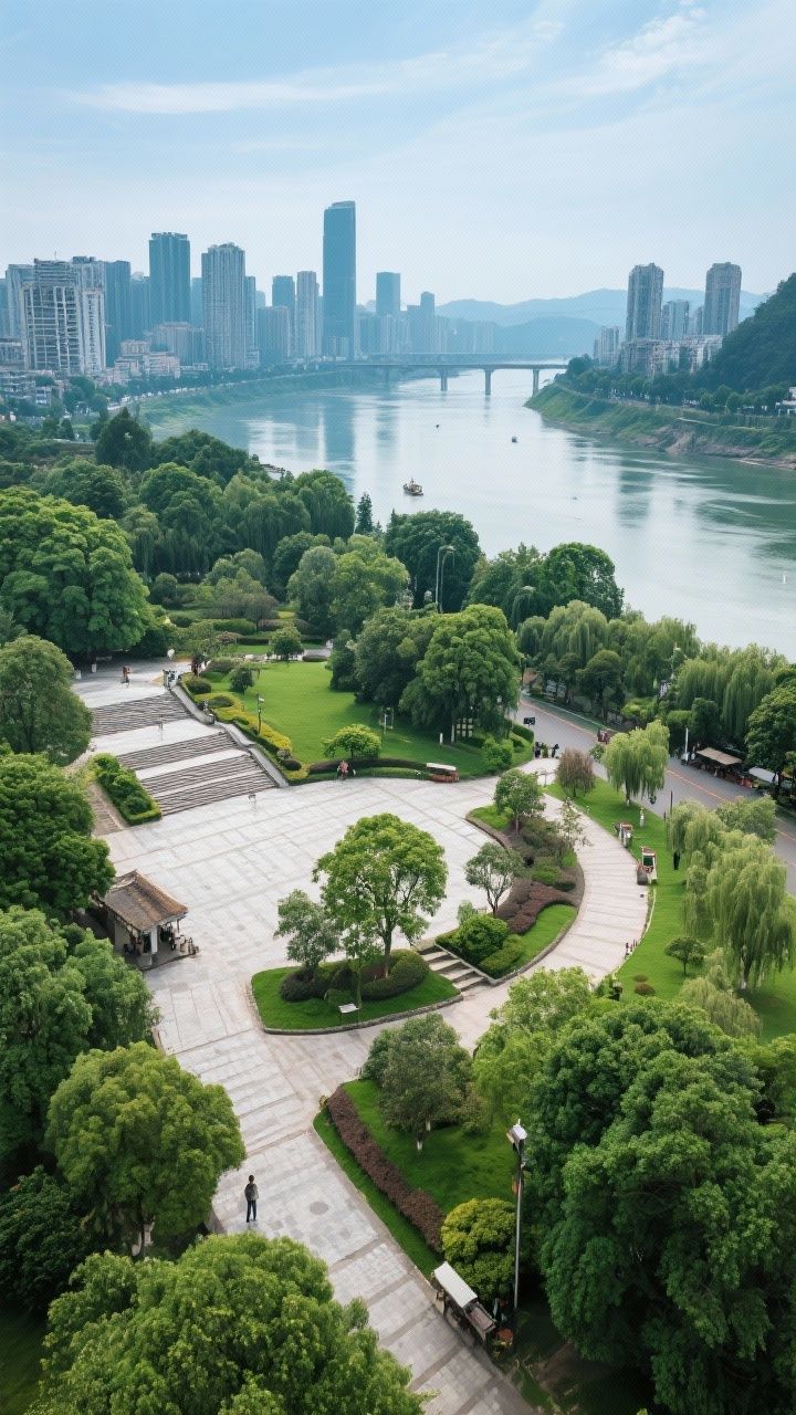 最后一站来到宜宾三江公园,才算见识了长江首城的壮阔。金沙江、岷江在此交汇,最终汇入长江,两江清水与一江浊浪碰撞出清晰的界限,江水奔腾向前,气势磅礴。江边的步道上,游人三三两两,有的举着相机记录三江汇流的奇景,有的伴着江风散步聊天,江面上偶尔驶过几艘游船,汽笛声与风声交织,成了最特别的节日背景音。站在江边,看江水滔滔,才明白这座城市为何因水而兴,因水而灵。