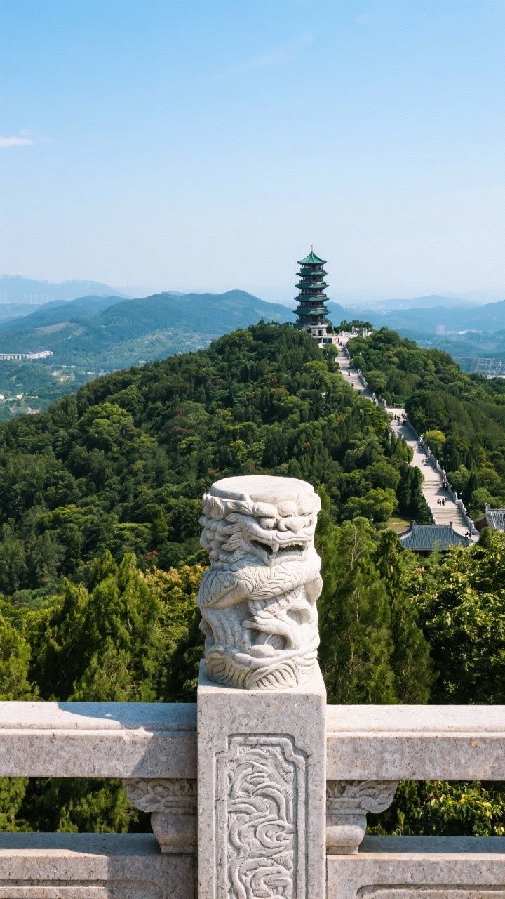 从城市公园转到龙山公园,又是另一番景象。这里的山势不算陡峭,拾级而上时,能看到漫山的植被染上了初秋的浅黄,登高望远的瞬间,整座城市的轮廓尽收眼底——远处的高楼、近处的街道,甚至能瞥见节日里穿梭的车流,像流动的星光。山顶的观景台成了最佳打卡点,吹着山风,望着天边渐沉的暮色,心中满是开阔与惬意。