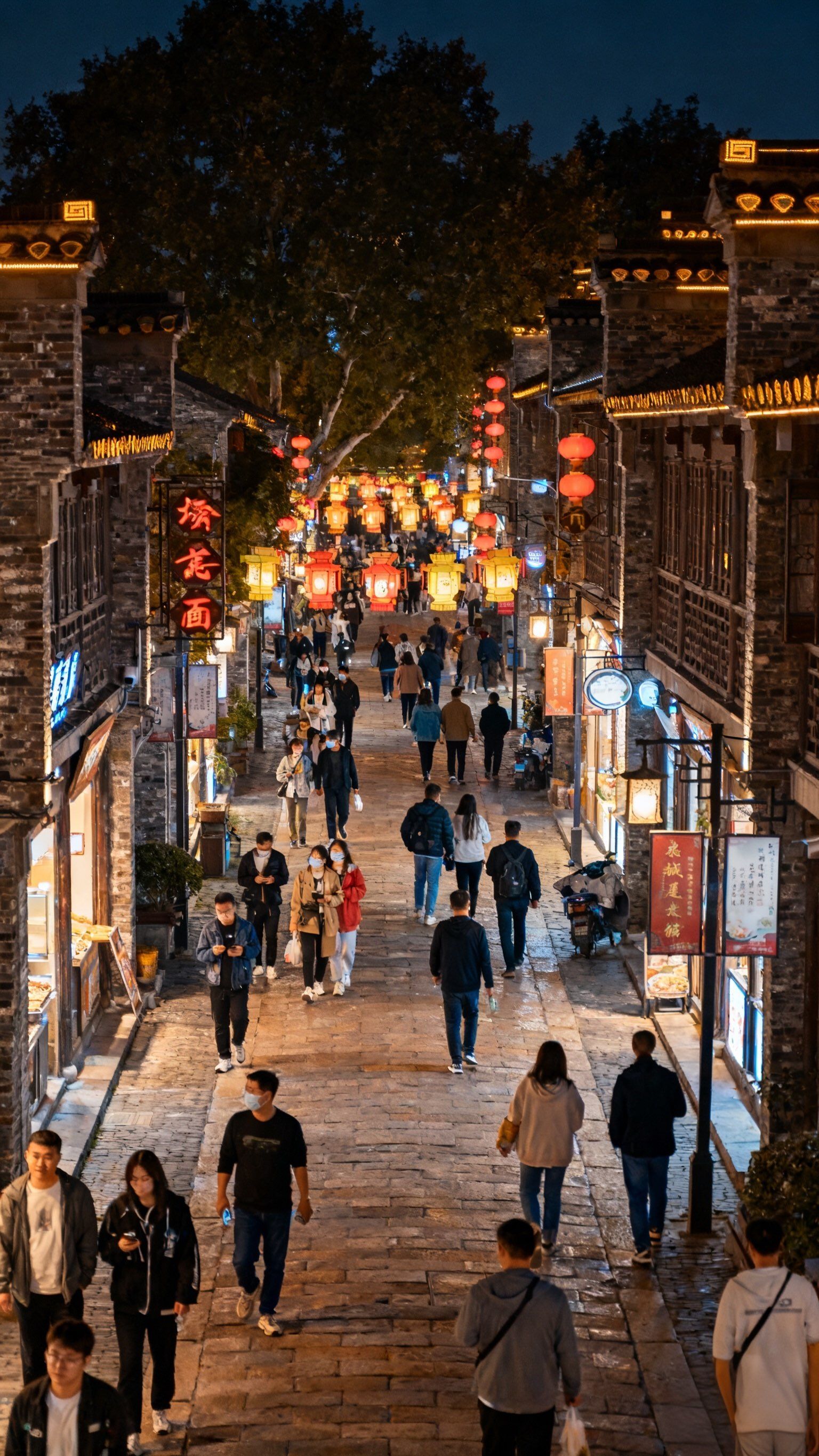 傍晚可到便益门码头,乘画舫夜游古运河。夜幕降临后,两岸灯光亮起,文昌阁、东关古渡等在光影中尽显魅力,航程约40分钟。