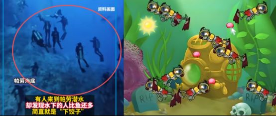 尤其是看到帕劳海底潜泳拥堵的情况,第一印象就是植物大战僵尸中水族馆的“喂养僵尸”[呲牙],简直像得不要不要的!一群穿着潜水服的人,在海底左右突围,不像是在潜泳,像极了在等着“投喂”!