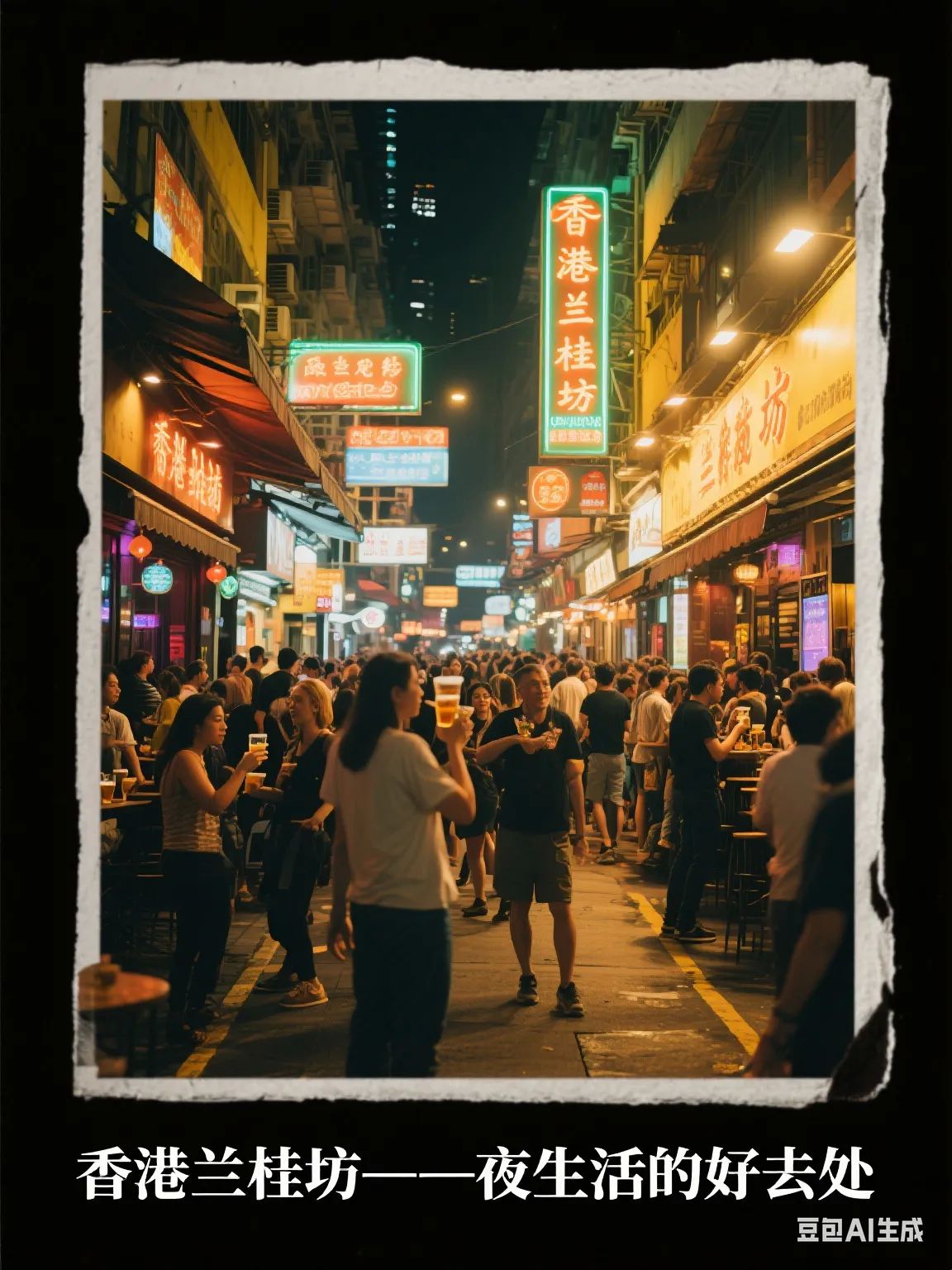 兰桂坊:香港著名的酒吧街,集中了众多的餐厅、酒吧和夜总会。夜晚的兰桂坊灯火辉煌,热闹非凡,是香港夜生活的代表之一。在这里,你可以与朋友一起享受美食、美酒和音乐,感受香港的夜生活氛围。