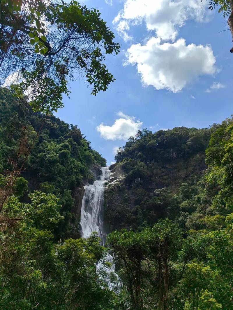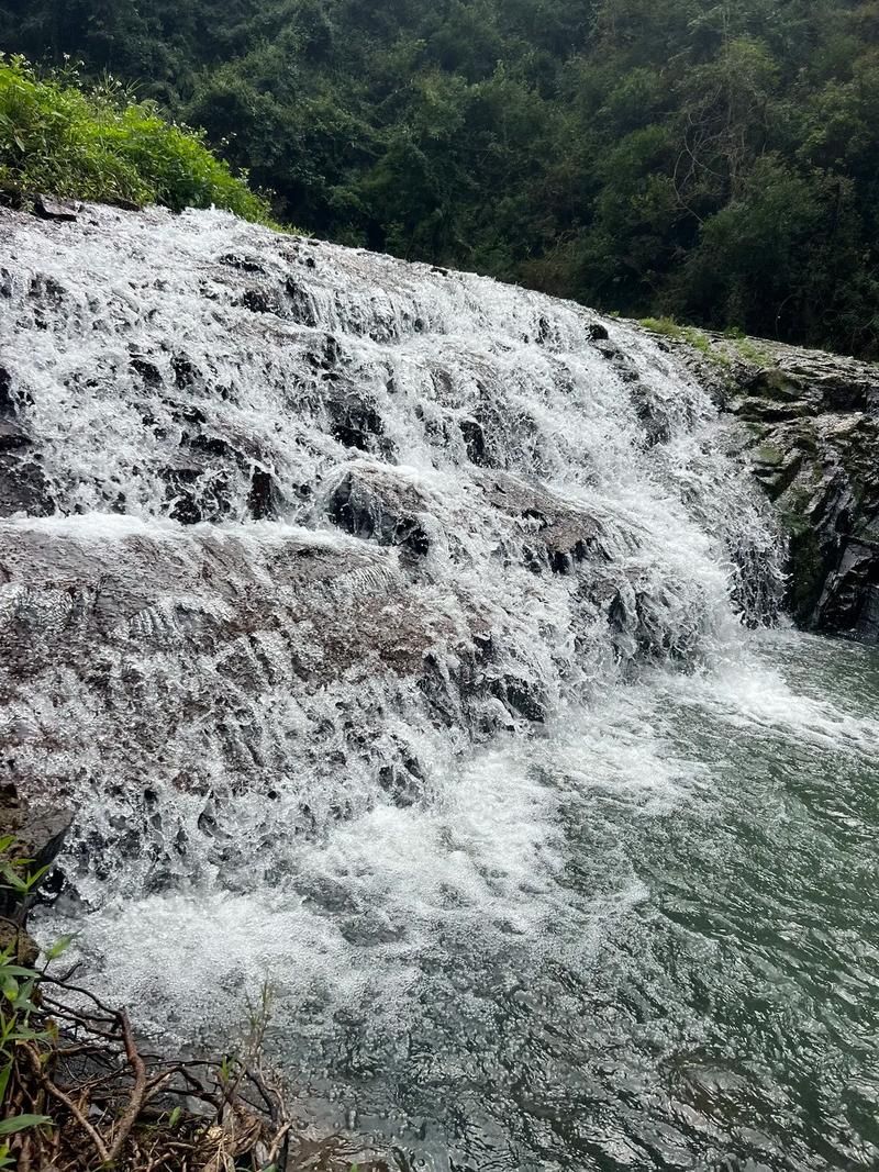特色:广西罕见三叠瀑布,落差80米,周边原始森林覆盖,负氧离子丰富。