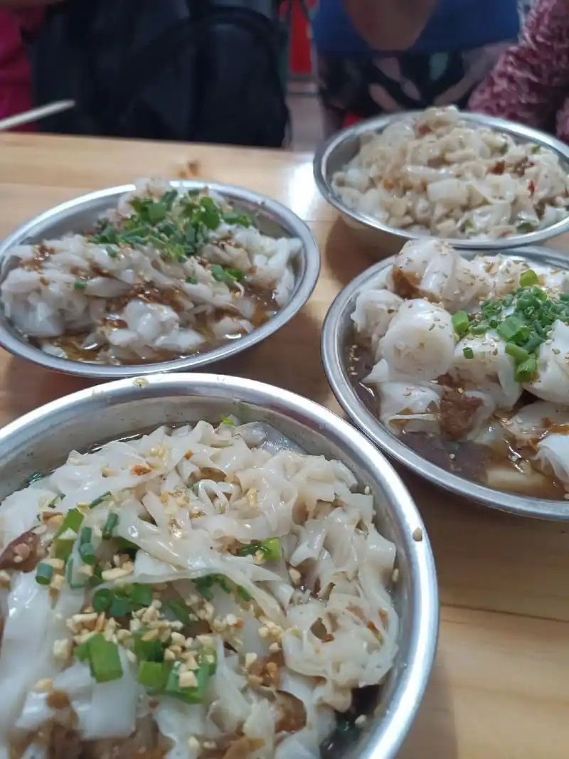 本地最爱:白斩狗搭配米粉,蘸料含紫苏、辣椒,市区粉店全天供应。