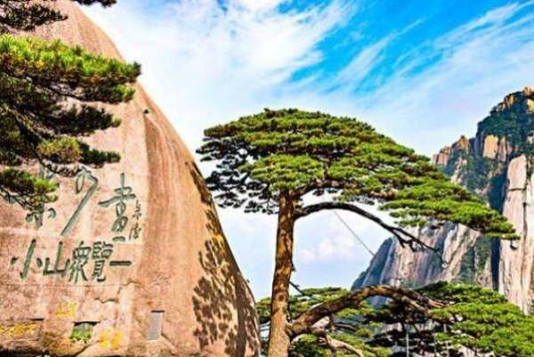 迎客松:位于玉屏楼左侧,是黄山的标志性景观,一侧枝桠伸出,如人伸出臂膀欢迎远道而来的客人。