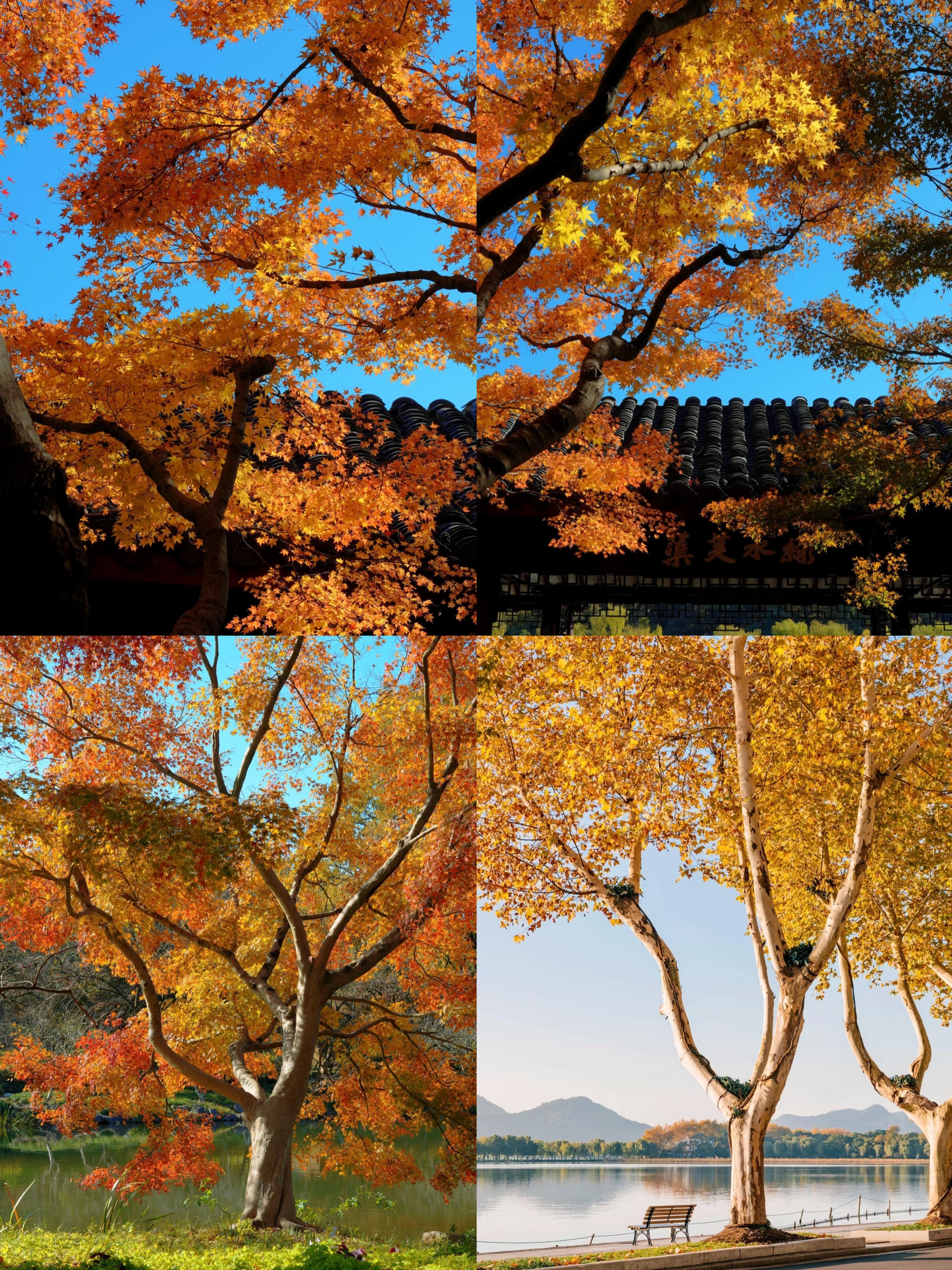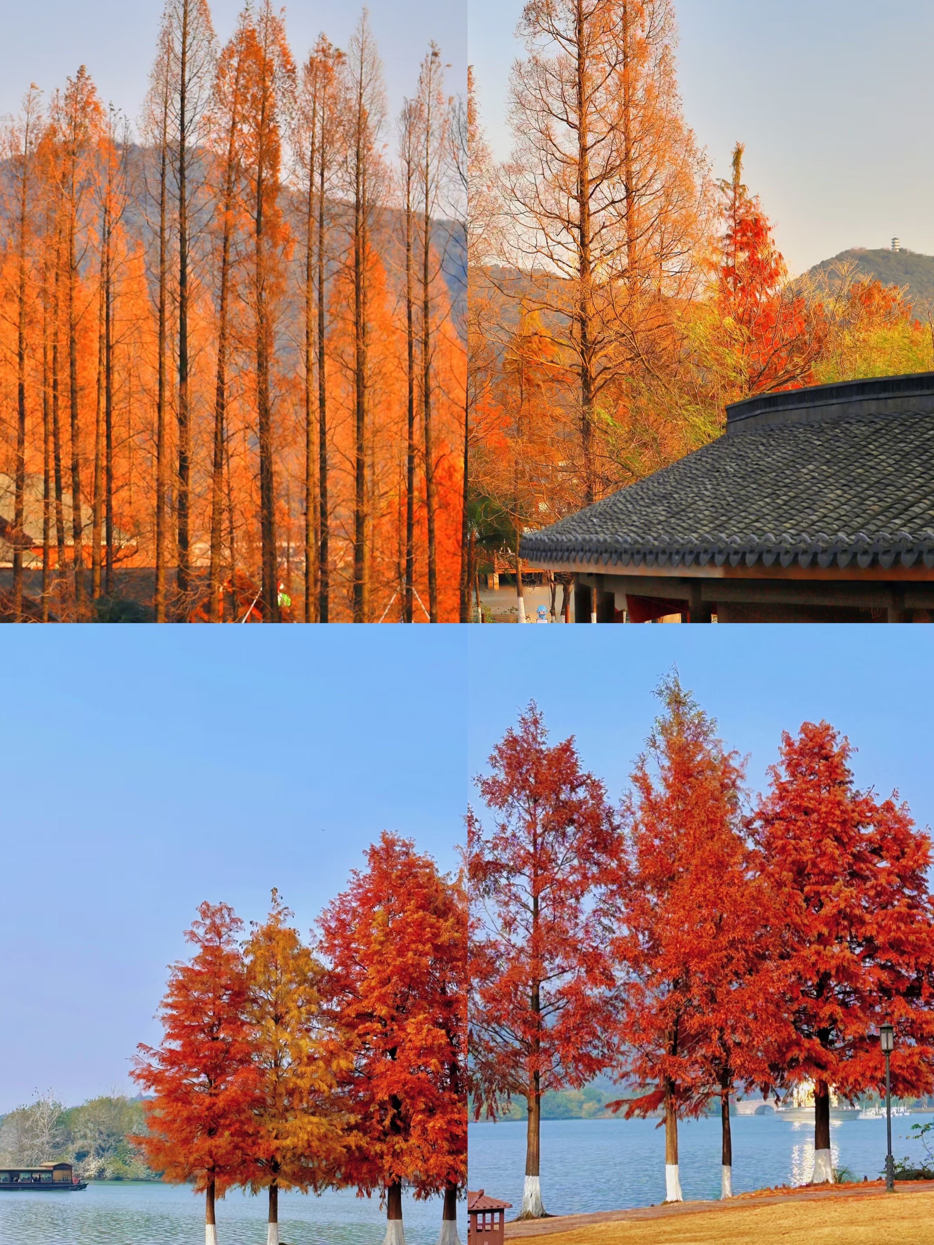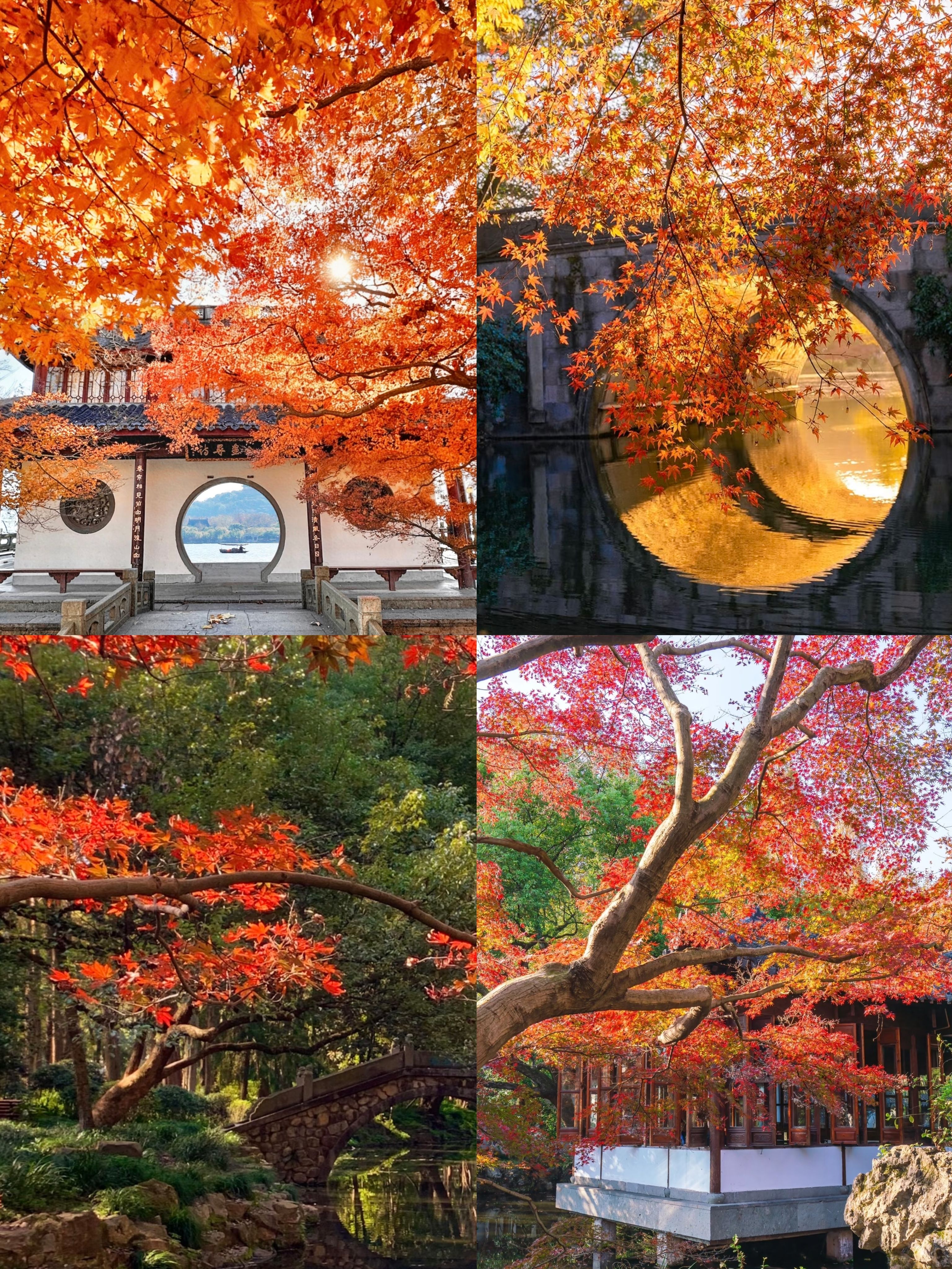 这里以西湖为背景,亭台楼阁搭配枫叶,拍照超级出片。不过它属于大众景区,游客超多,建议大家早上早点去,避开人群,独享这份美景~我上次一大早就去了,清晨的阳光洒在枫叶上,波光粼粼的湖面,真的太治愈了。