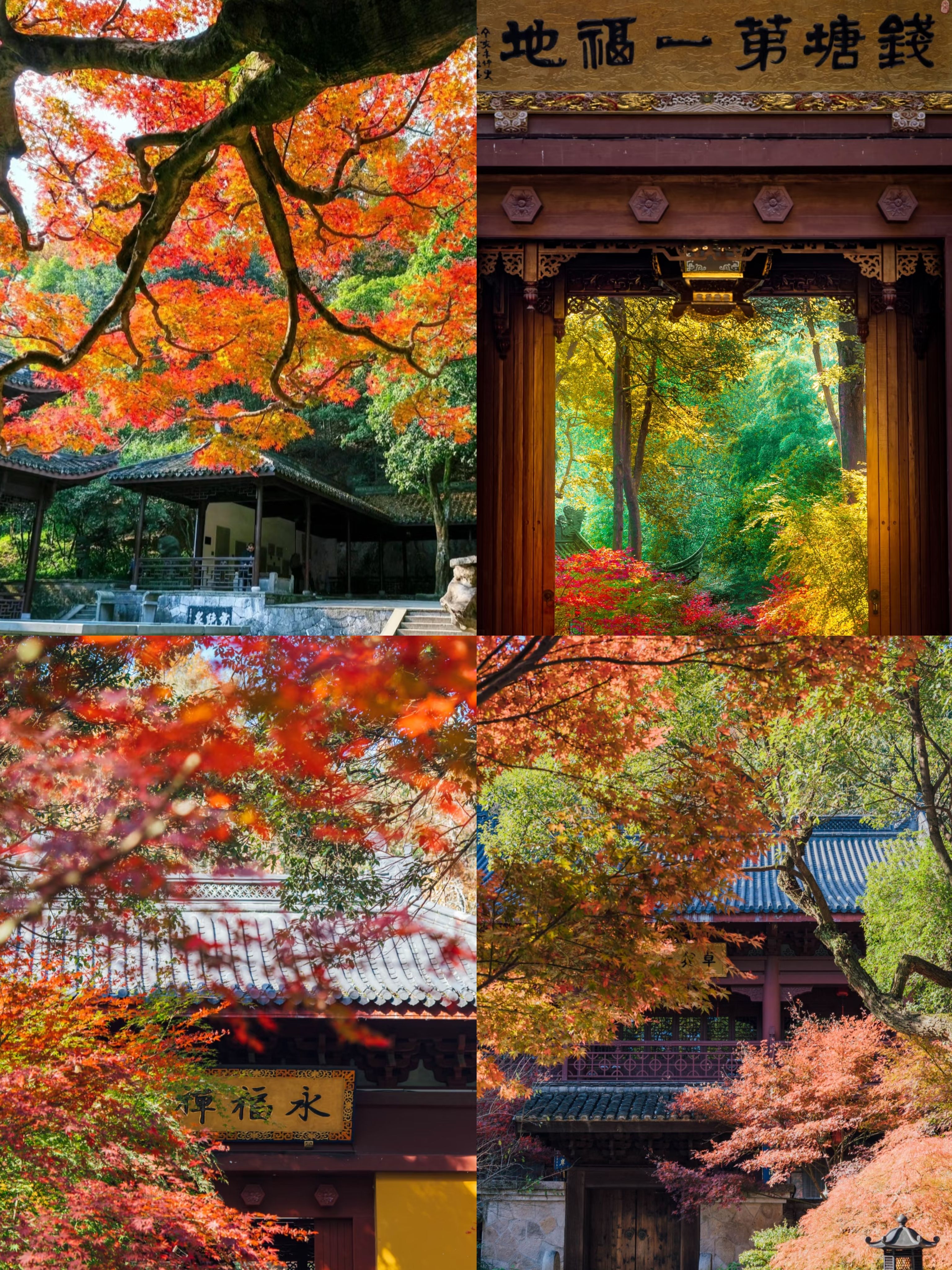 有着“中国最美寺庙”之称,里面的网红桥和几棵枫树美到极致。以“钱塘第一福地”的金匾和寺门做前景,枫树做背景,随便一拍都是大片。在这里,心灵也能得到片刻的宁静。