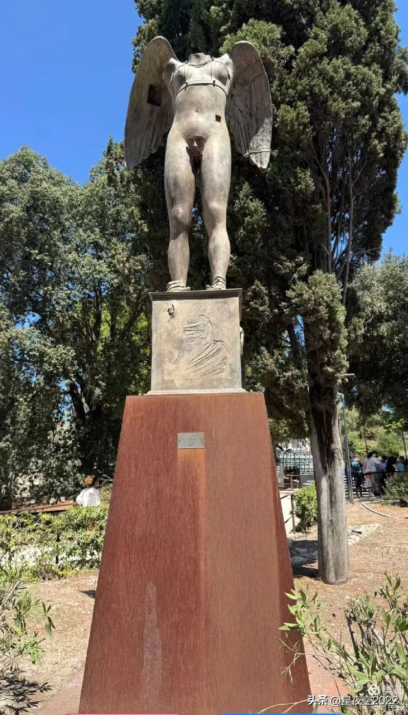 在位于考古公园铁栅栏里边的一座现代艺术品,见图9,从造型看应该是圣伊卡洛斯。