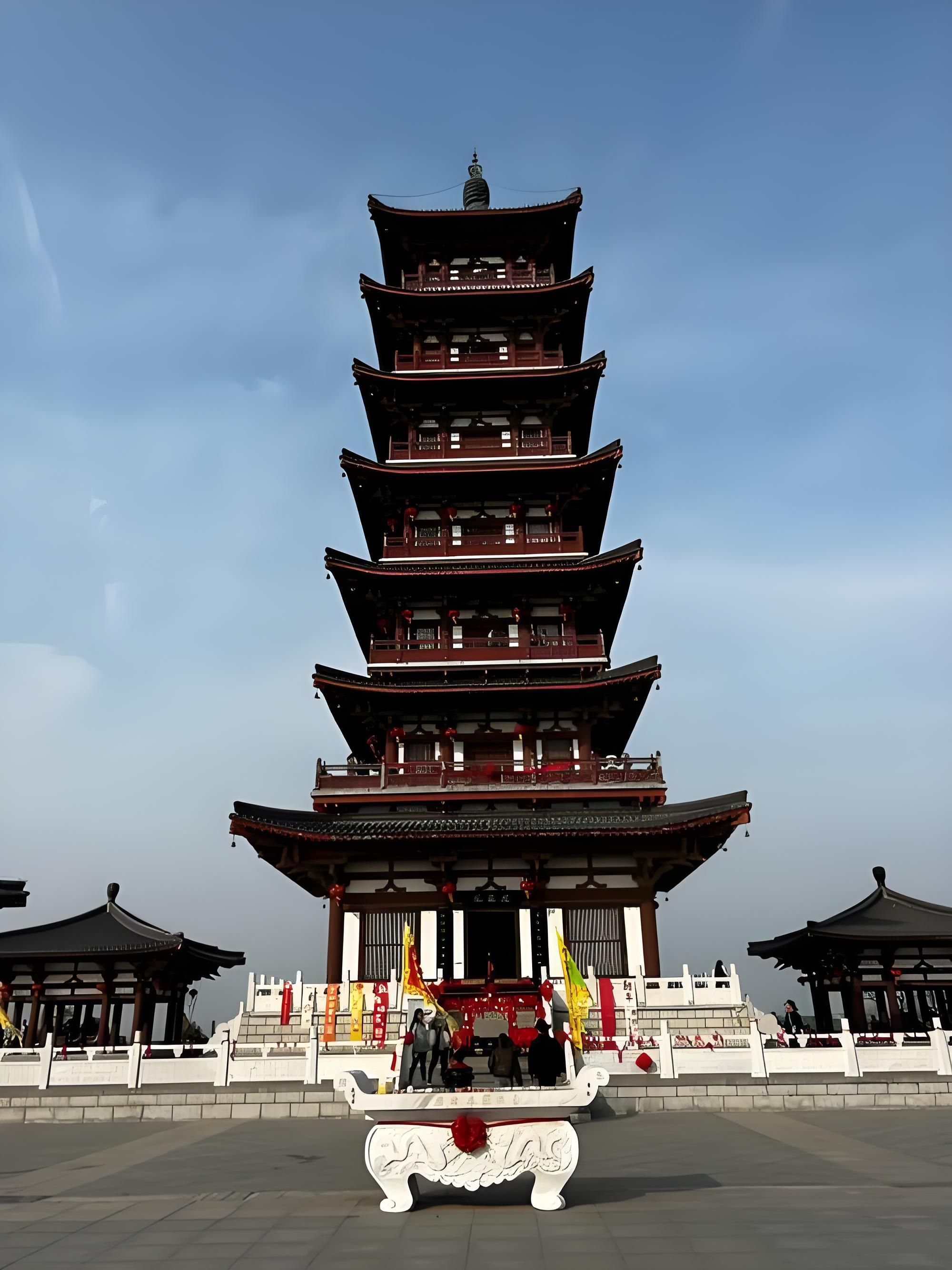 门前广场上,一尊高十米的钟馗石雕像巍然屹立,由整块灵璧石雕刻而成。雕像中的钟馗身披官袍,目光如炬,虬髯怒张,右手持剑欲挥,左手托宝,神情威严却不失慈和。灵璧石特有的墨黑底色与天然纹理,让雕像更显古朴厚重,仿佛从历史深处走来,默默守护着一方安宁。拾级而上,山门内的铜铃随风轻响,似在欢迎访客,又似在诉说钟馗的传奇故事。