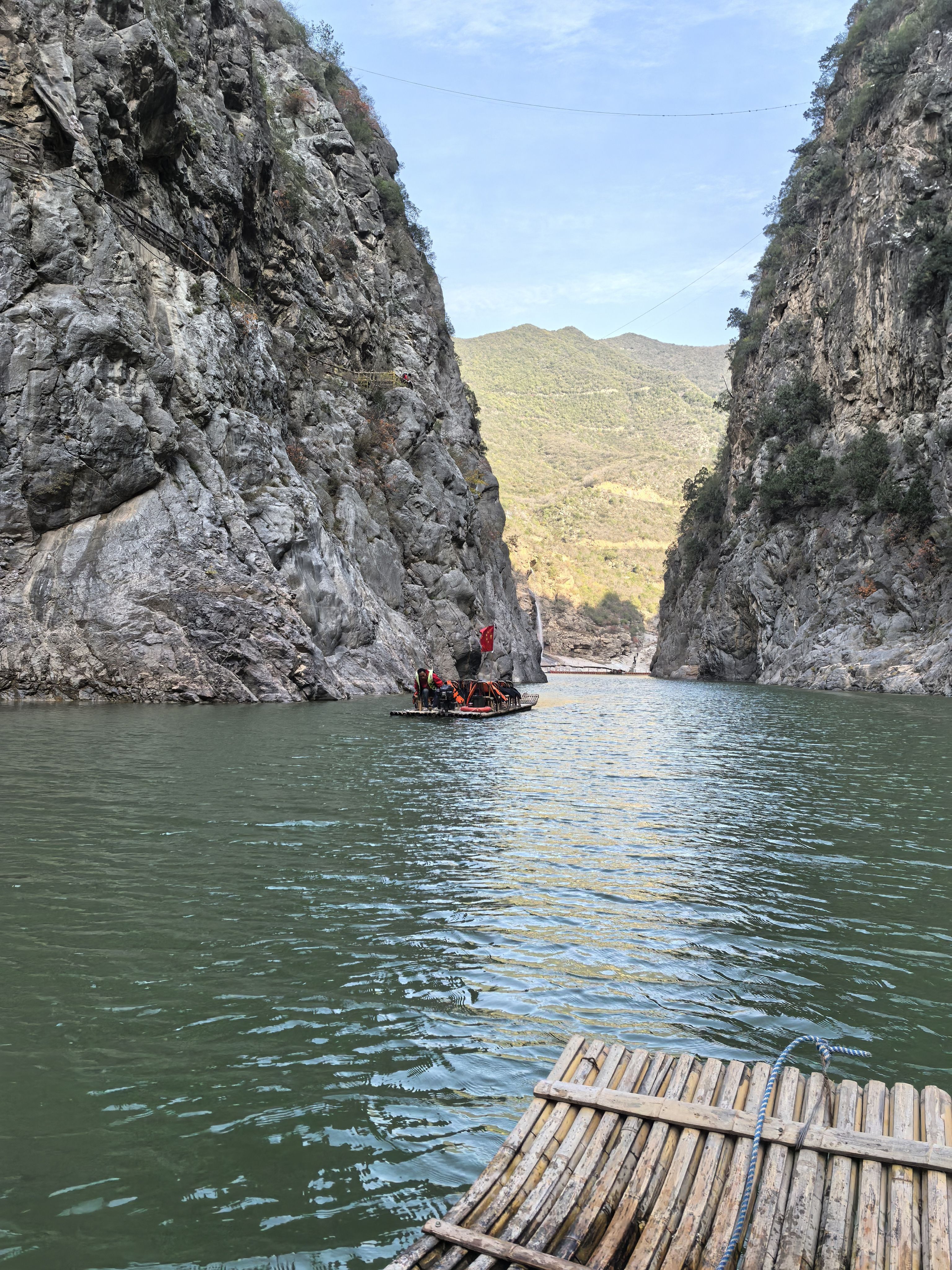 下到谷底,乘竹筏到黑沟返程点,已经是午后两点多了,景点旅游观光车络绎不绝,安全地将游客送到山下停车场。