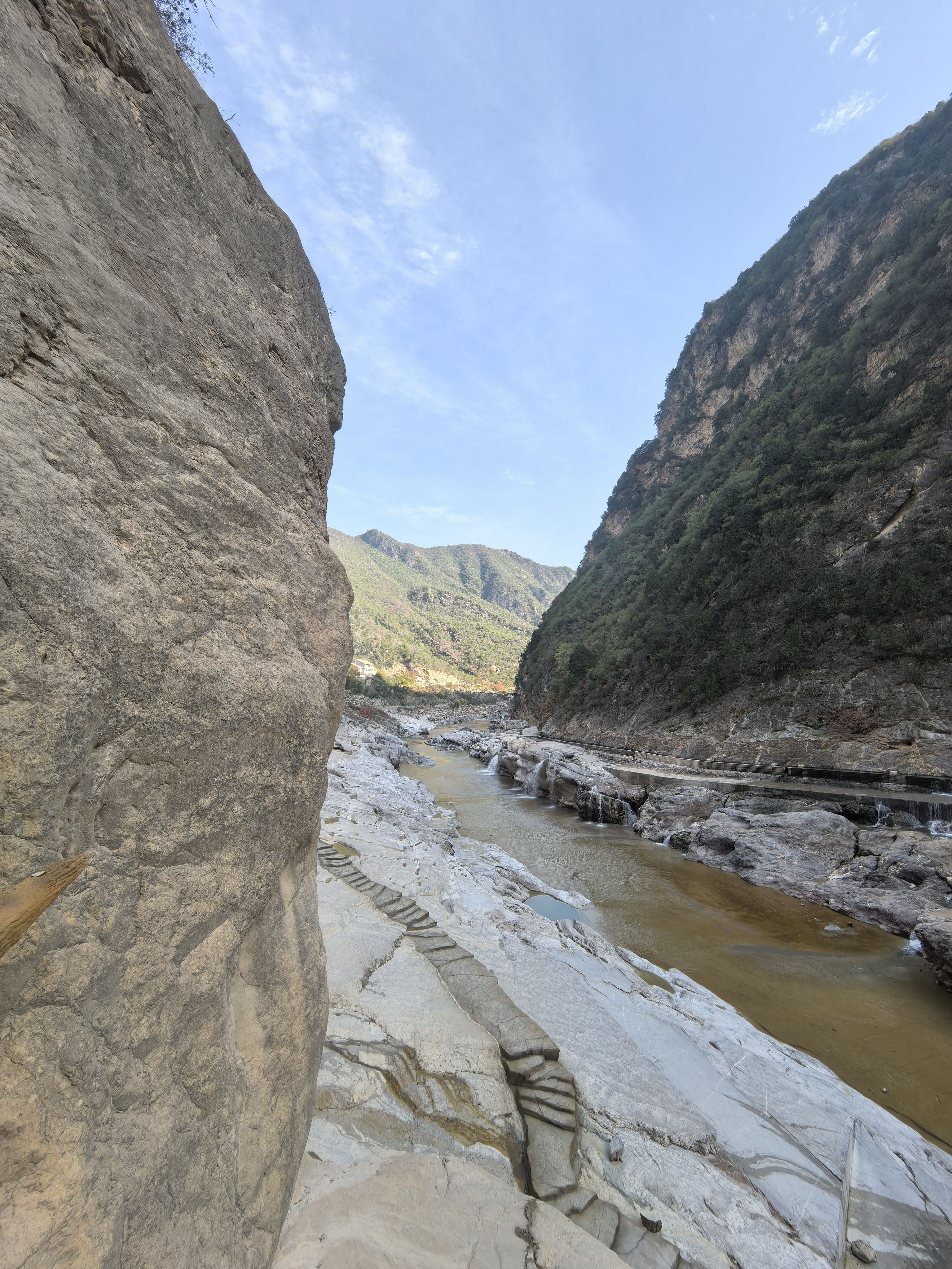 图4,图5,两岸壁立,夹在两山之间的泾河。