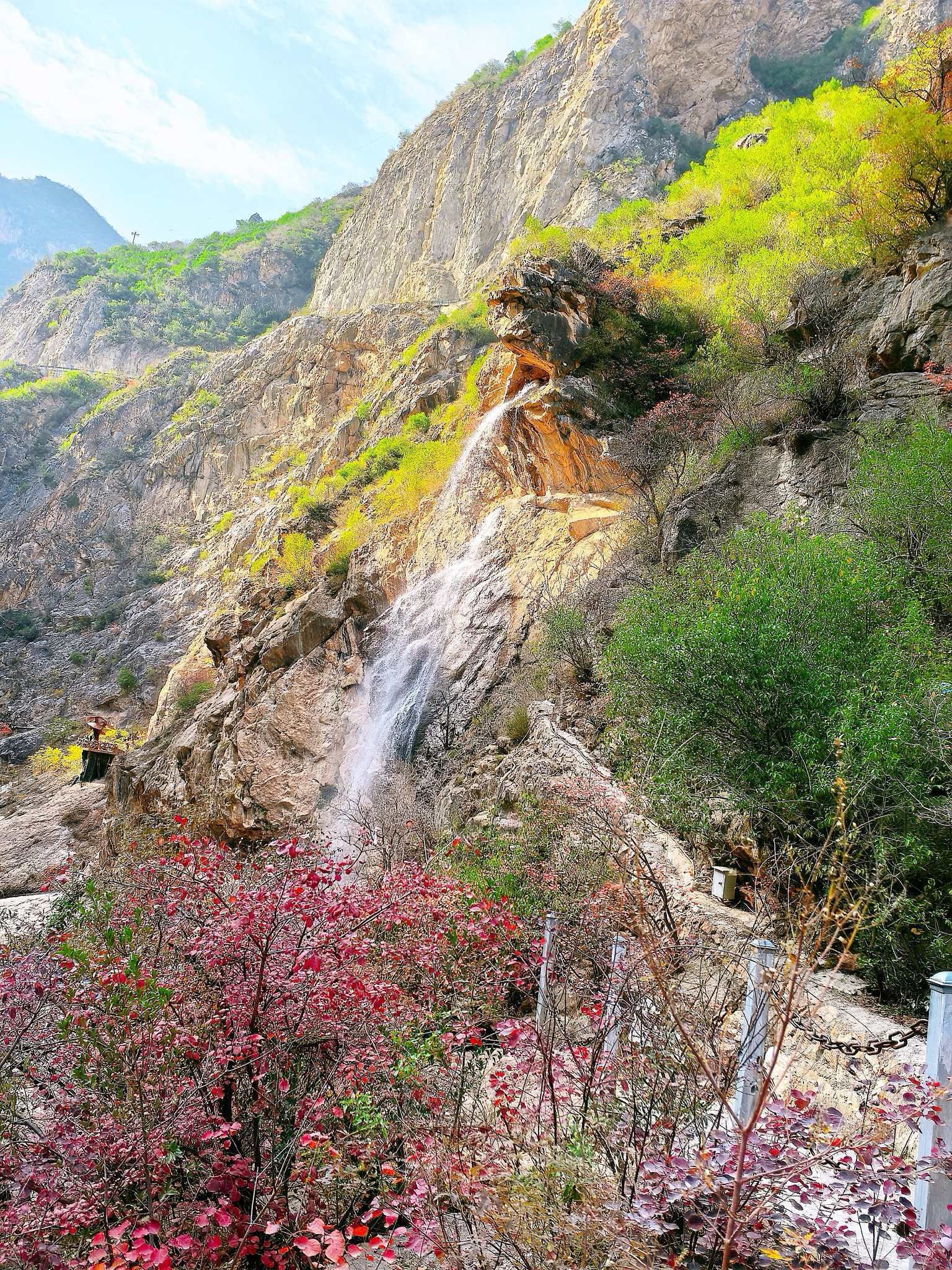 上岸后沿着两岸壁立、夹在两山之间、深不见底猶如碧绿彩带的泾河河道,一路下行,饱览一河两岸的絕美风光。这里特别要提到的是那悬挂在绝壁上的虎啸瀑布,仰头望去,那独居山崖的虎头威武壮观,偌大的水流、水柱从虎口喷涌而出,声震峡谷,恰似虎啸声在峡谷回荡。游人驻足观赏,不由得赞叹这大自然造物的鬼斧神力。