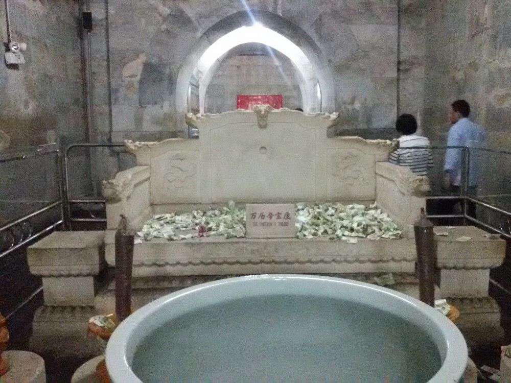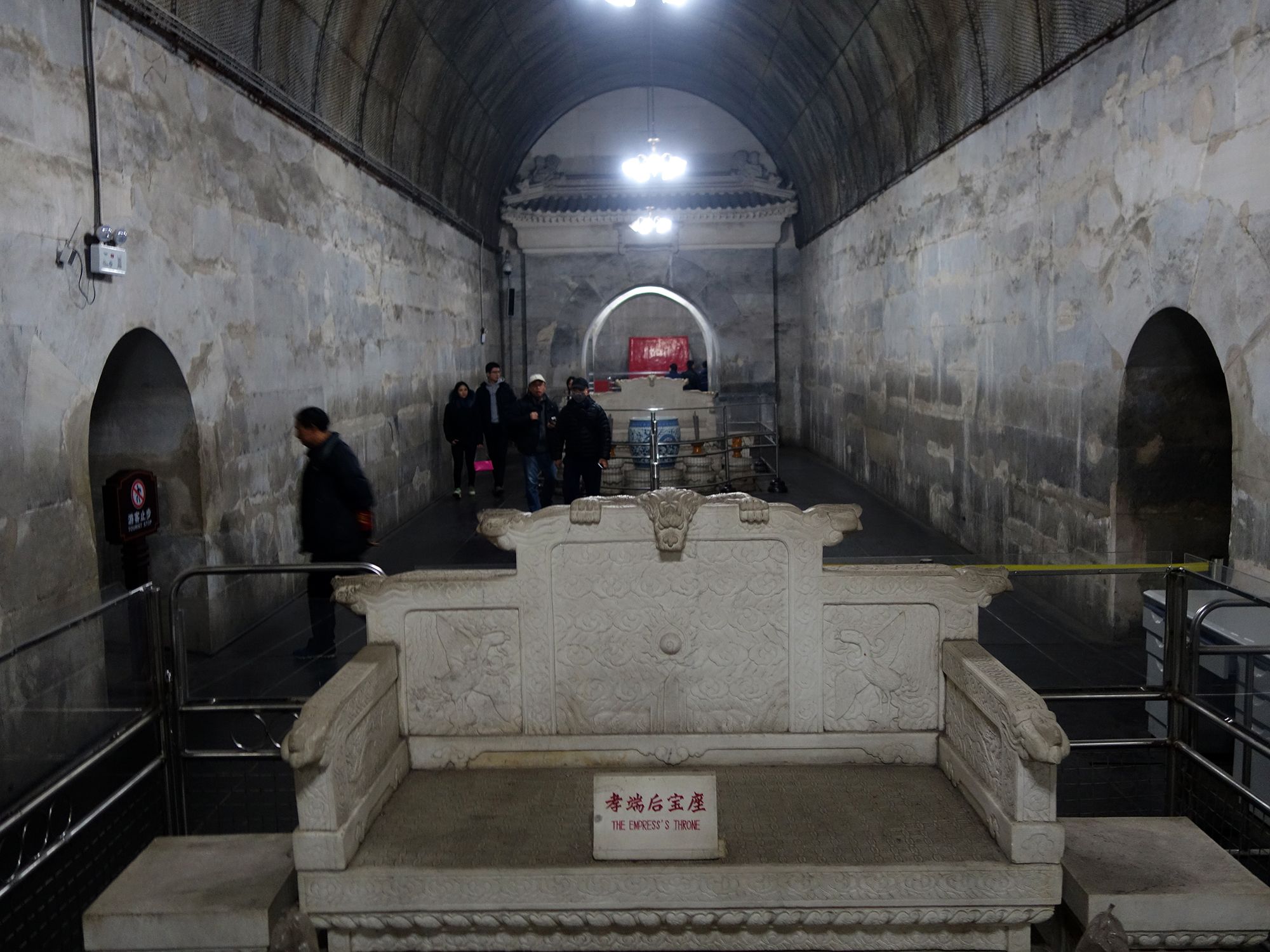 定陵的地下宫殿由地宫和三层墓道组成,结构复杂,布局严谨。墓室内陈设庄重,金碧辉煌,反映出明代皇家的等级观念和宗教信仰。其中最引人注目的是“皇帝宝座”,象征永恒的权力与威严。