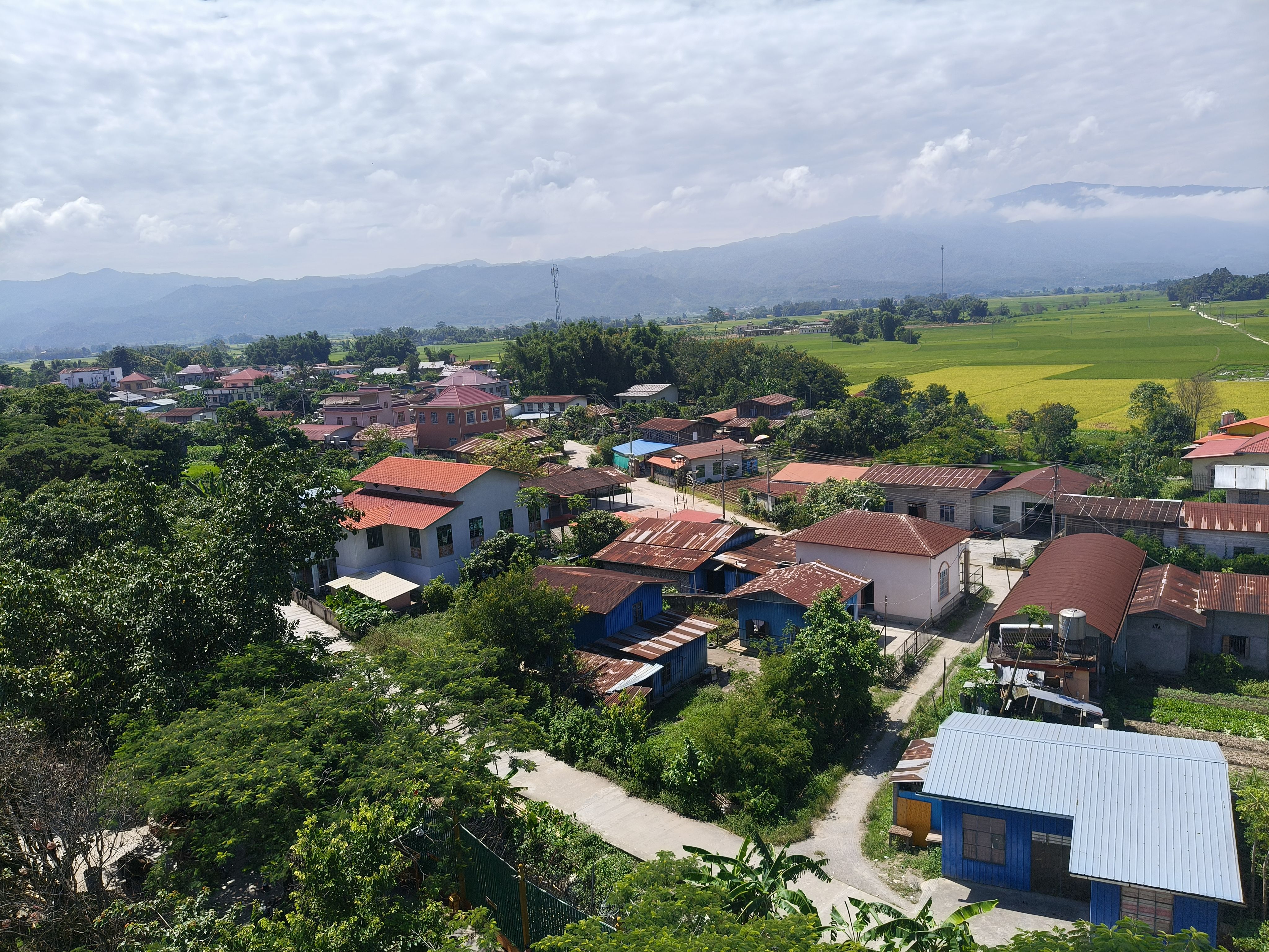 从金塔出来就去了“一寨两国”。距离瑞丽市区约10公里,在瑞丽市姐相乡银井村。“一寨两国”是中国边境线上最独特、最有趣的景观之一,完美体现了瑞丽“一个坝子、两个国家、三座城市”的特殊地理风貌。是一个傣族村寨被中国和缅甸两国的国界线一分为二,中方一侧称为 “银井”,缅方一侧称为 “芒秀”。这里的居民语言相通、习俗相同,世代通婚,过着“同走一条路,共饮一井水”的“跨国”生活。
