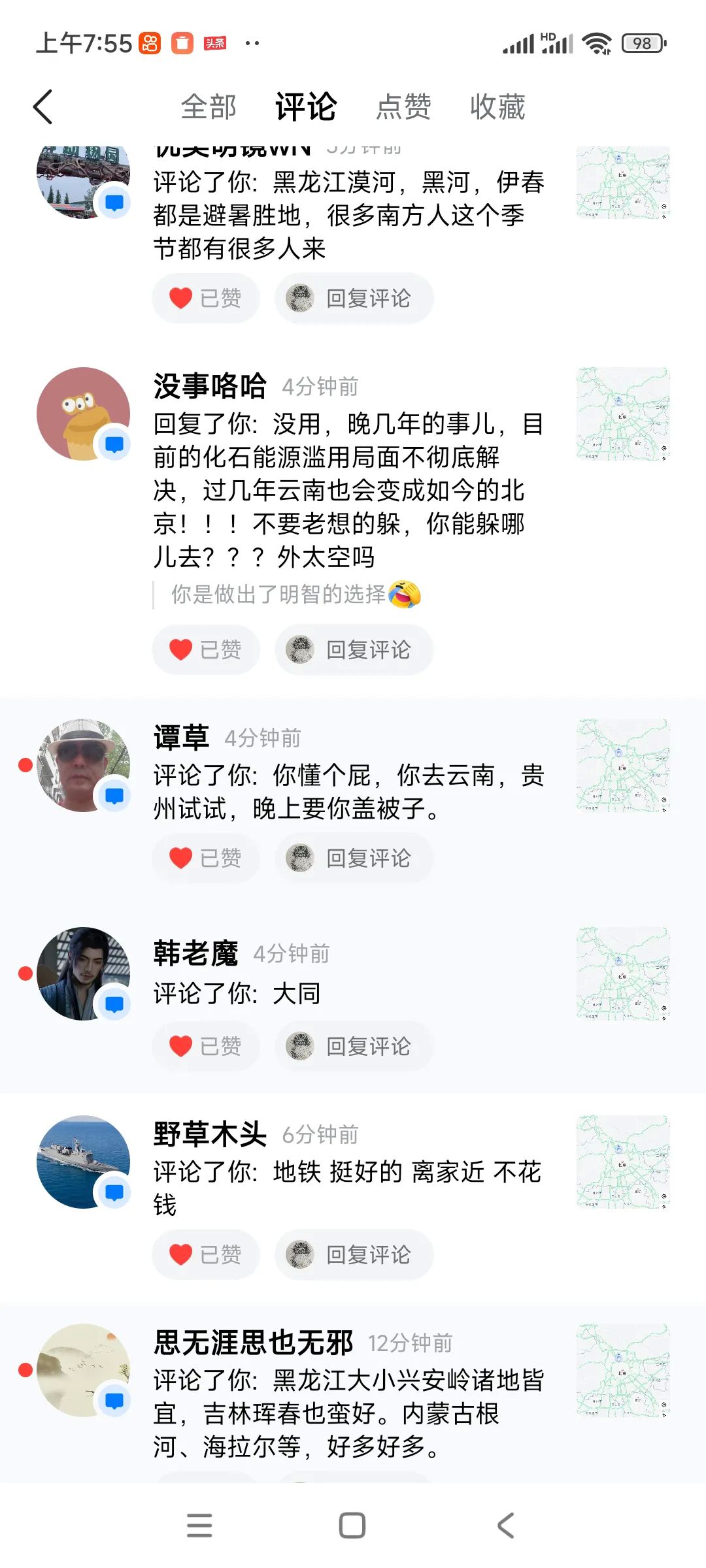我上篇的内容,确实说到不考虑南方,只考虑北方,因为南方大部分城市还是闷热酷暑难耐,我确实考虑不周,有朋友提到了云南昆明,曲靖,贵州六盘水,安顺,湖北恩施,神农架,福建厦门鼓浪屿,还有很多朋友发来来当地的气温截图,我犹豫了。