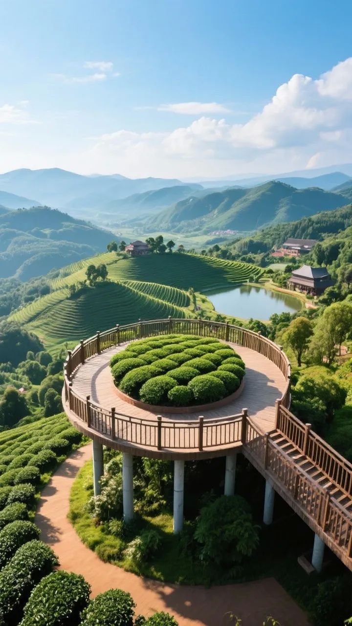 - **茶博苑观景台**:拍“人在画中采茶”,做延时vlog