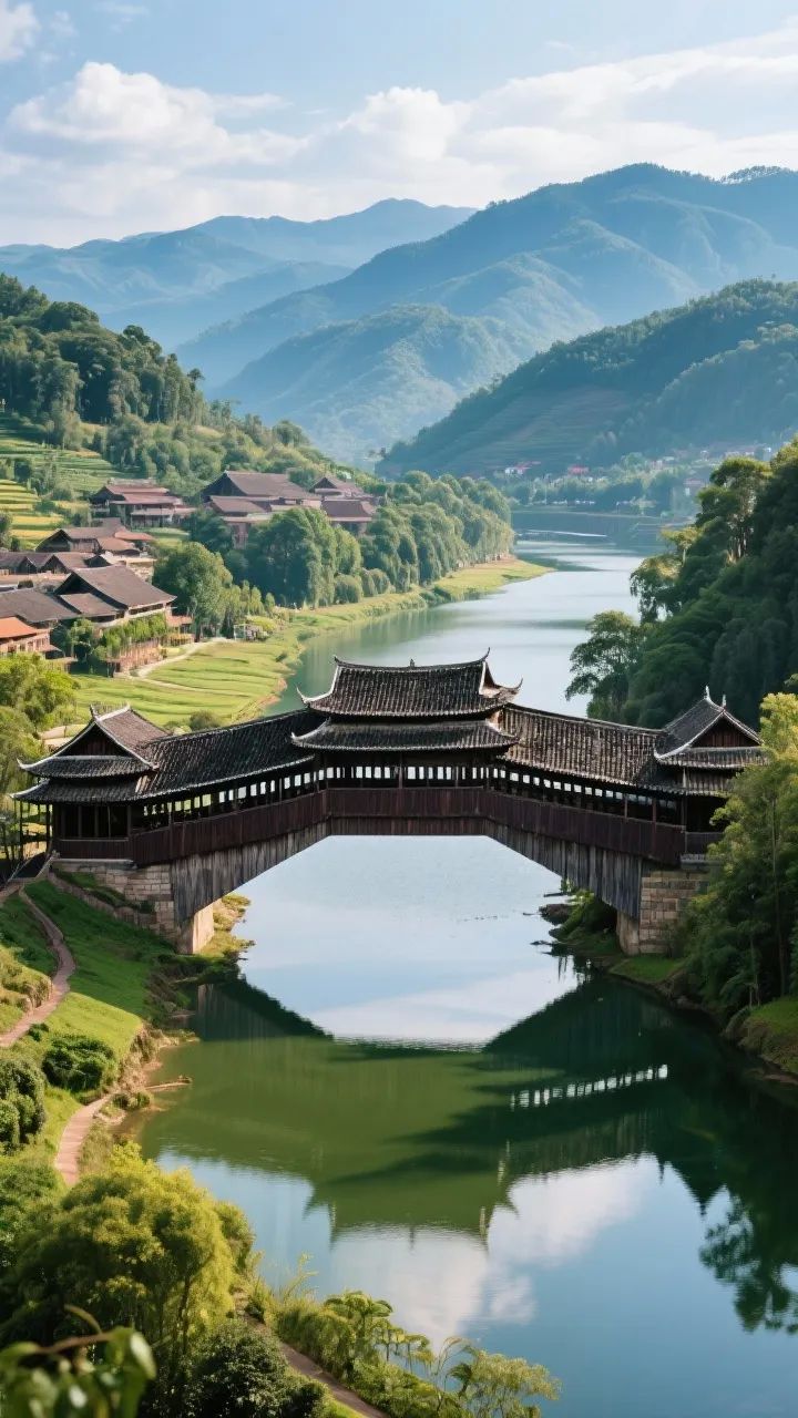 - **那柯里风雨桥**:穿棉麻长裙拍流水古道,文艺复古风