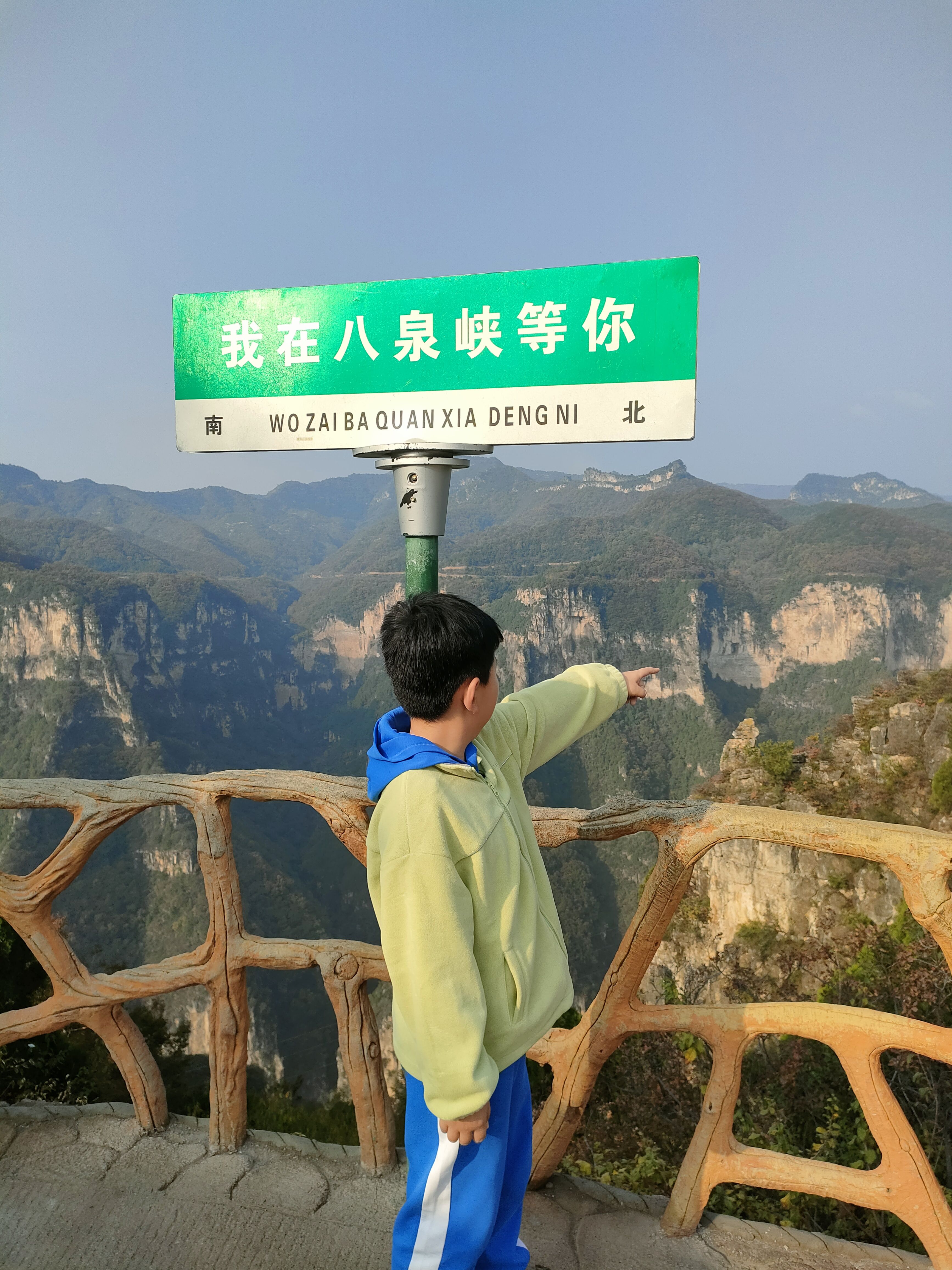 秋意正浓时,黄栌、枫香点缀在苍翠山壁,红黄斑斓。阳光穿过水雾,还能看到数道彩虹悬于青峰间,美得让人屏息。这次秋游八泉峡,真是难忘!
