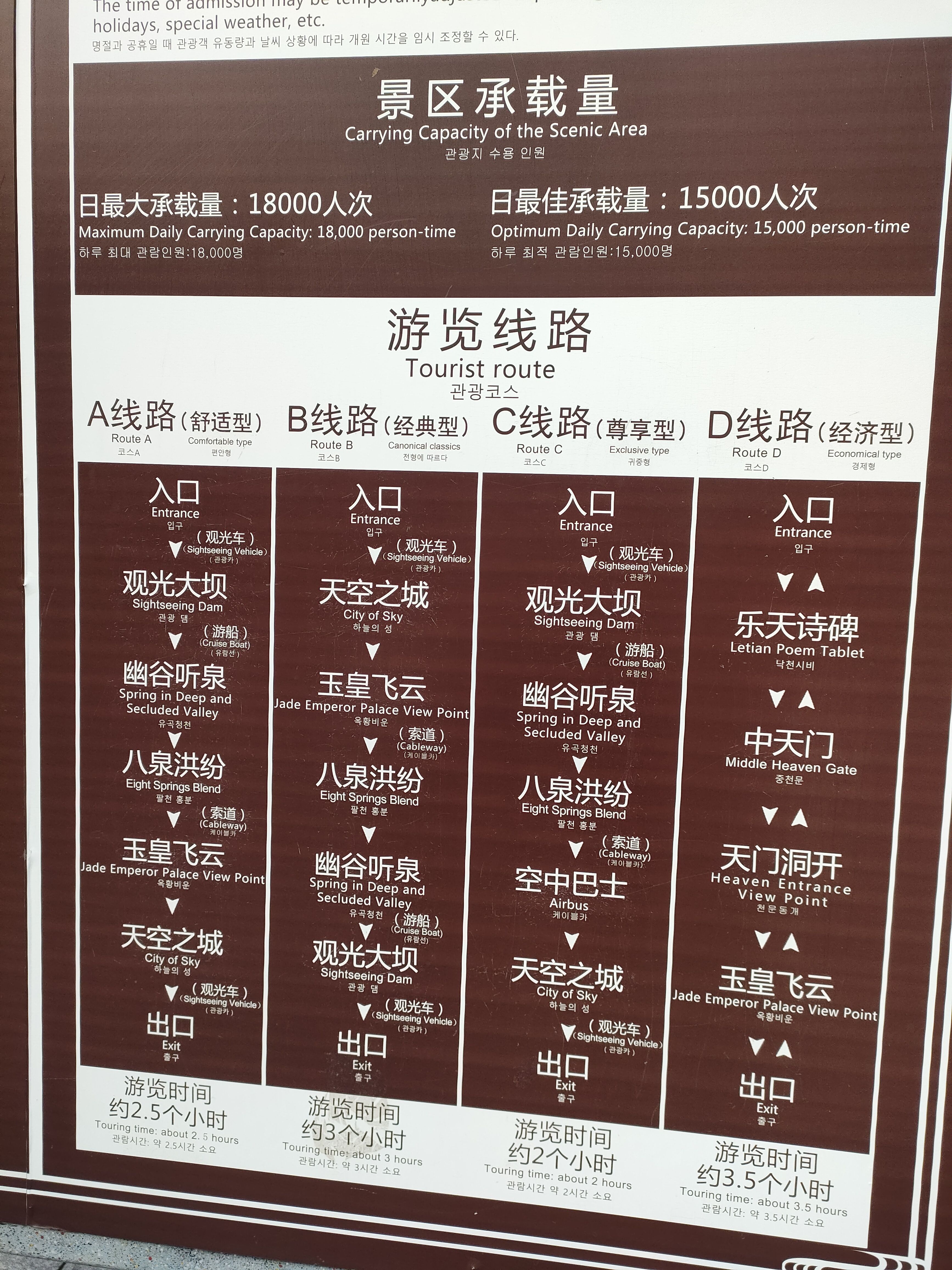 我们提前一天到达,晚上夜宿附近民宿,这里价格合理而且房价很大,极具性价比。第二天一早吃过早饭,约摸十来分钟就可到达景区。景区分AB两条线路,我们有的b线,如果有孩子建议走此线路,后程基本下坡相对轻松。前半段基本是体验现代交通工具的便捷与刺激,比如上面200多米的天空之城,上面有个玻璃观景平台,然后就是乘坐空中巴士上去换乘缆车,这是我做过时间最长的缆车,大约有二十分钟左右,翻过了一座又一座大山,直至峡谷底部然后开始下山,这一段也是景区的精华,人在山中走,水在脚下流,不得不感叹大自然的鬼斧神工!走到尽头乘船体验峡谷平湖的美景,到岸后坐车穿越时空隧道,就直达景区出口。