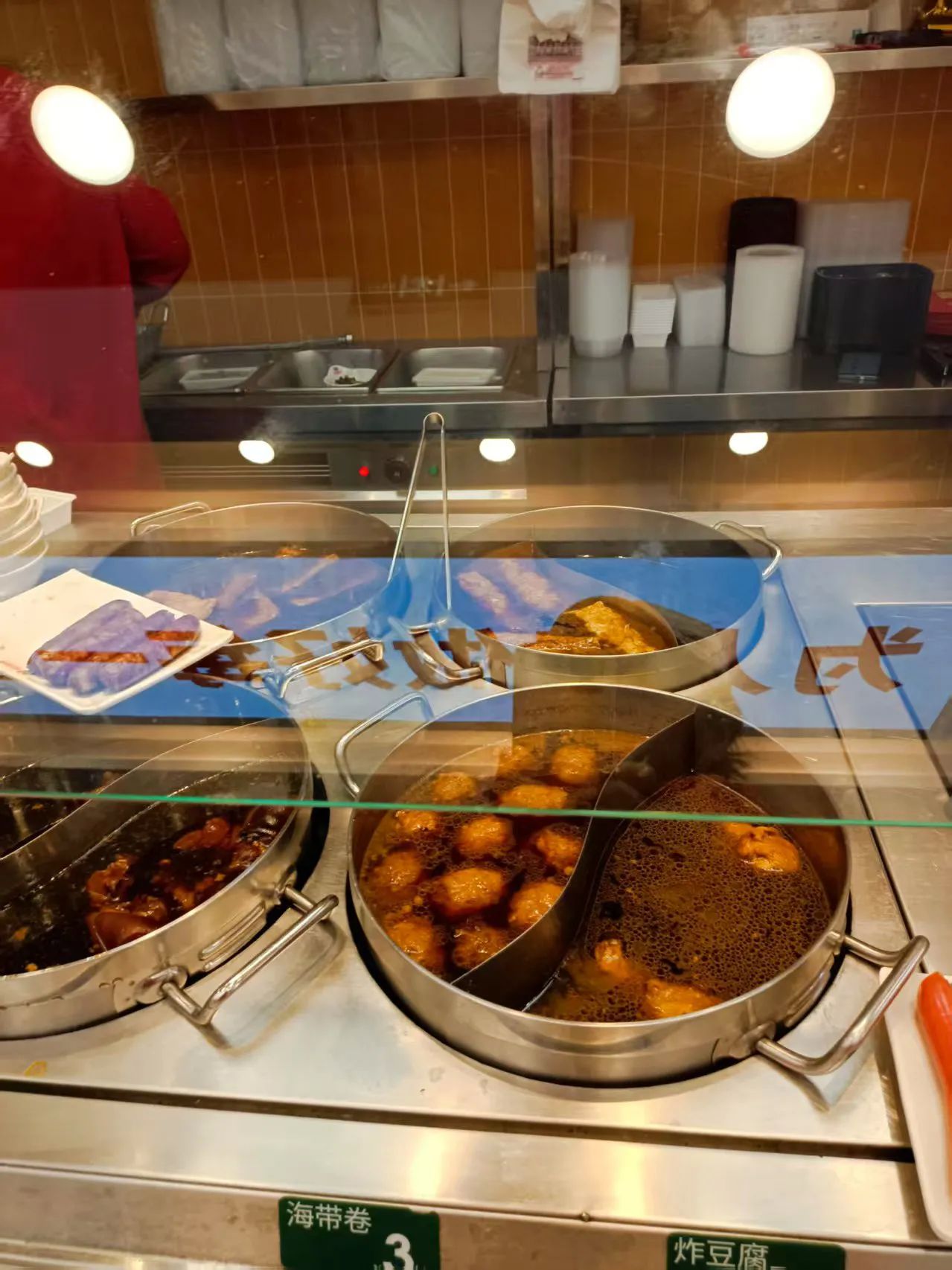 由于到了饭点时间,我先进快餐厅吃了点饭,买了一个大花卷,炒猪血豆腐,素土豆丝,芹菜熏干,都是素菜一共才15块钱。另外粥还免费,随便喝。