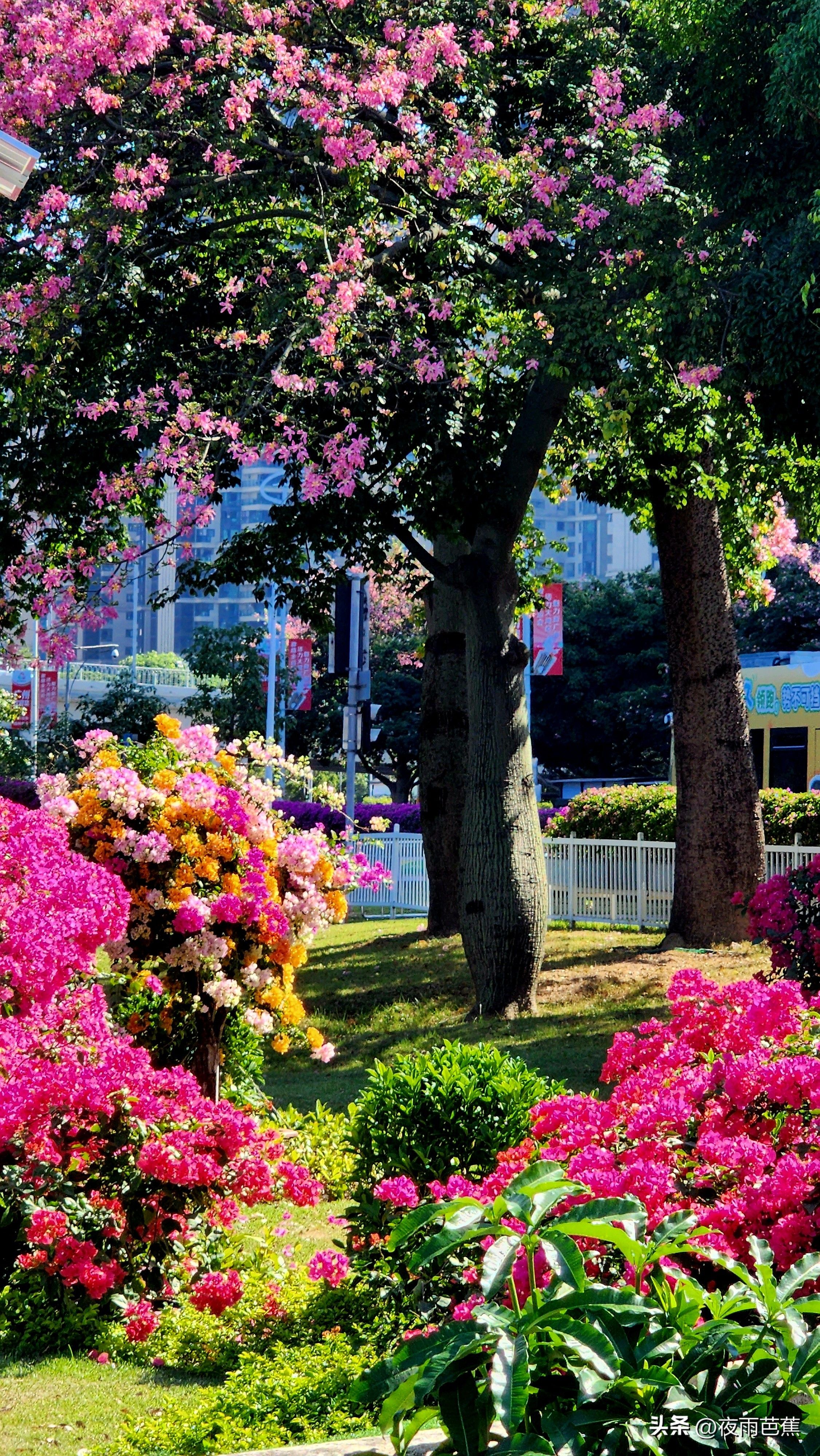 2、从琶洲大桥南站徒步前往会展东站,沿途异木棉与三角梅竞相绽放,仿佛踏入了宫崎骏笔下的漫画世界,美轮美奂。
