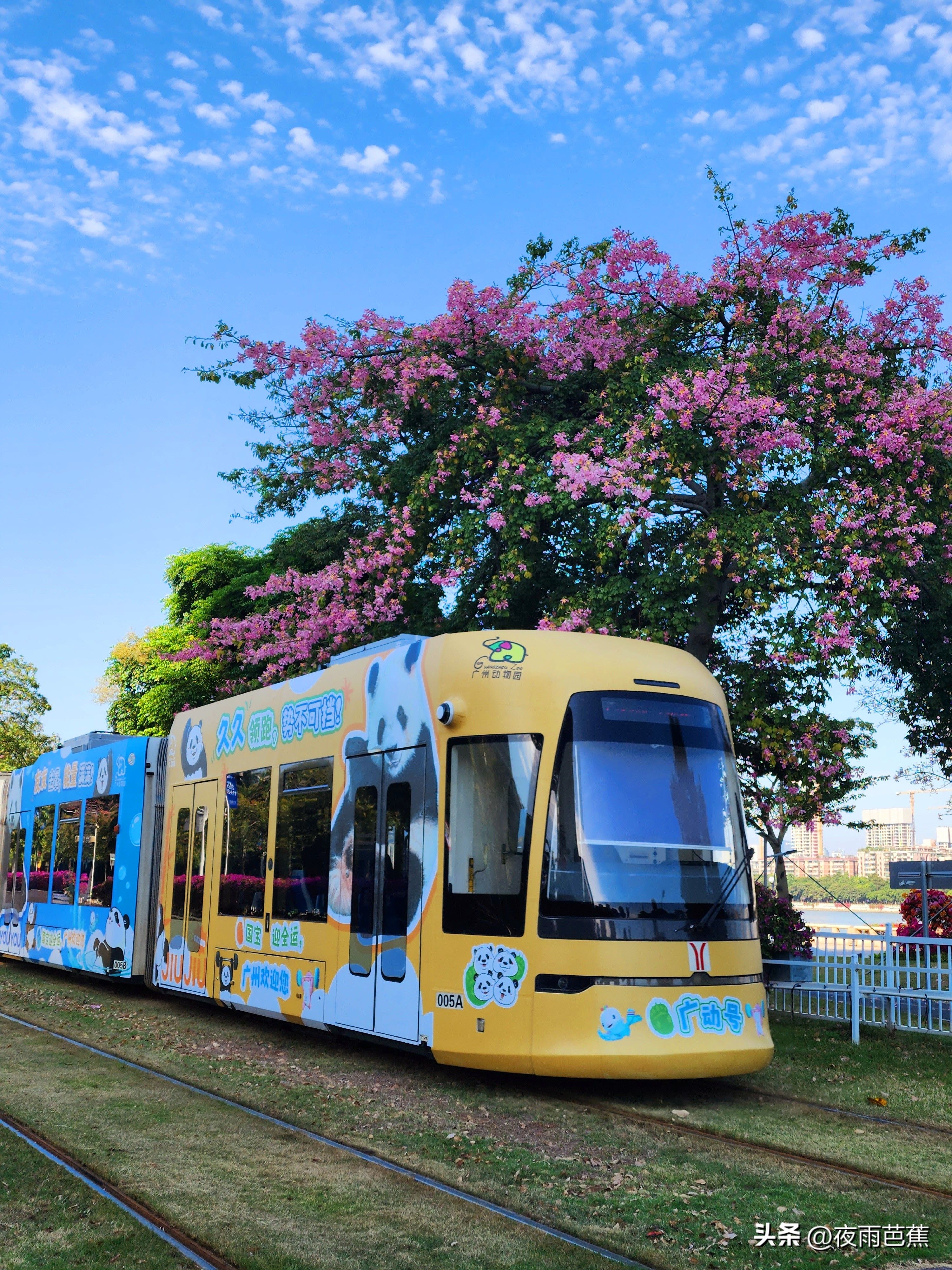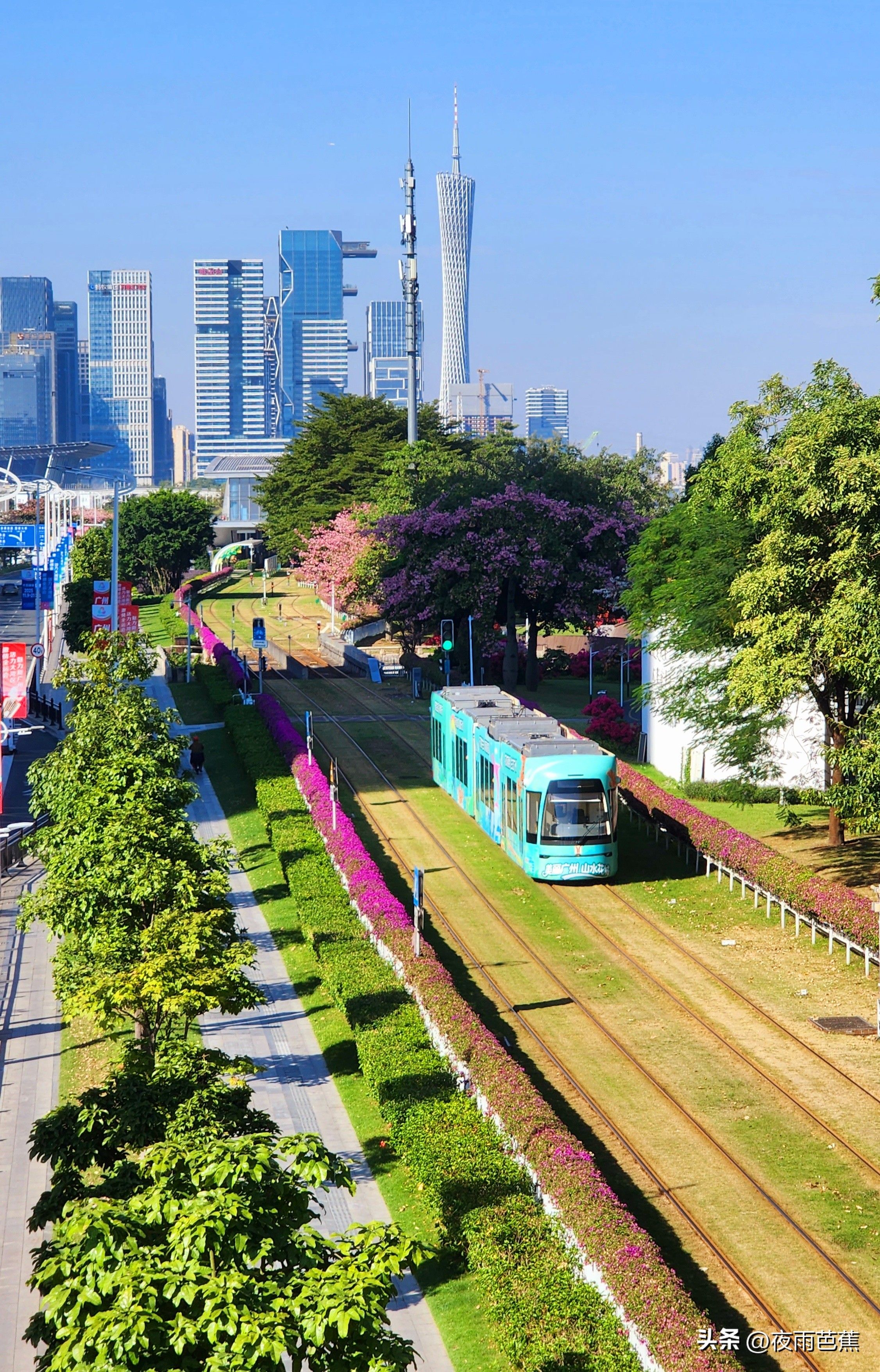 广州有轨电车,珠江畔最美的7公里旅程,从广州塔站至万胜围站共设10个站点,现在
