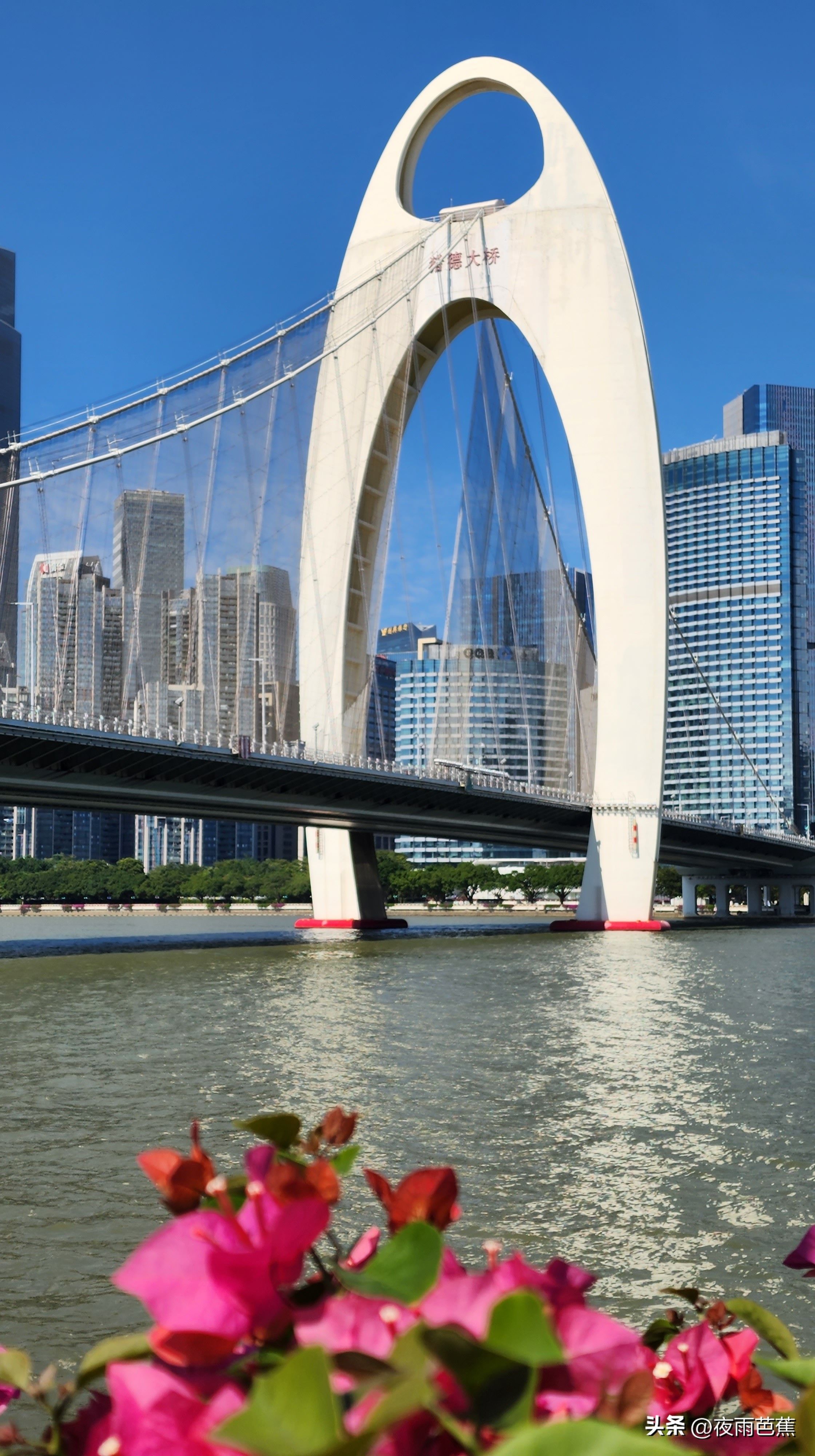 5、猎德大桥南站,从靠近广州塔一侧上桥,可俯瞰珠江美景。夜晚时分,灯光璀璨,与两岸高楼的霓虹相互映衬。从该站可一路徒步至广州塔,新建的黄埔涌桥已经开放,可在此悠然欣赏广州珠江新城的繁华盛景。