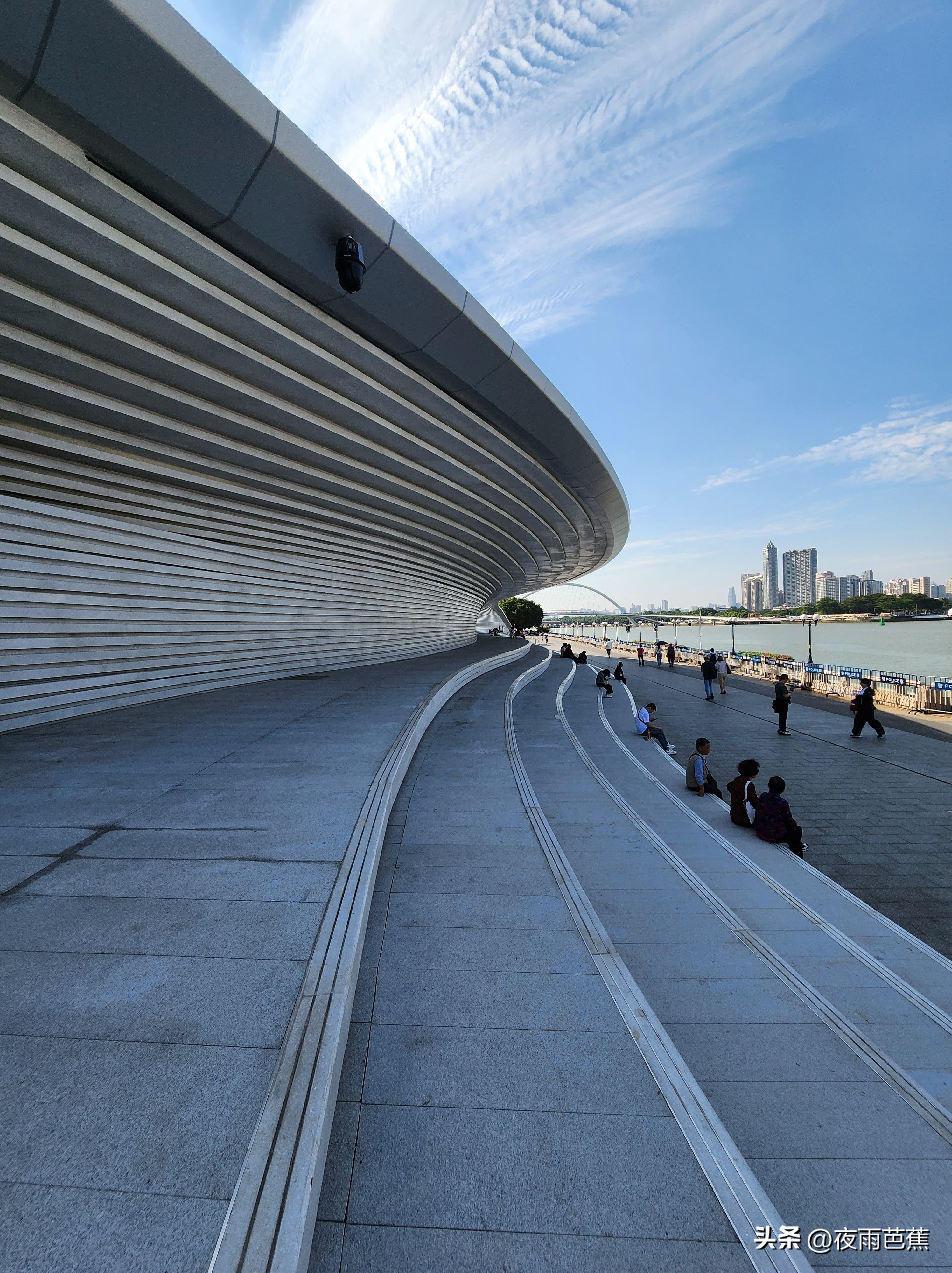 3、南风站,作为广州首个“空中花园”式立体交通综合体,二层平台径直延伸至江边。楼下是有轨电车浪漫的7公里轨道,背后则矗立着微信、阿里巴巴等互联网企业的摩天大楼。平台中央有一处名为“珠江之吻”的景观,侧面望去宛如烈焰红唇,走进其中,实则是一个超大的望江台阶,在此放眼望去,可将广州最繁华的景象尽收眼底。南风站也是拍摄有轨电车与广州塔同框的绝佳新机位。