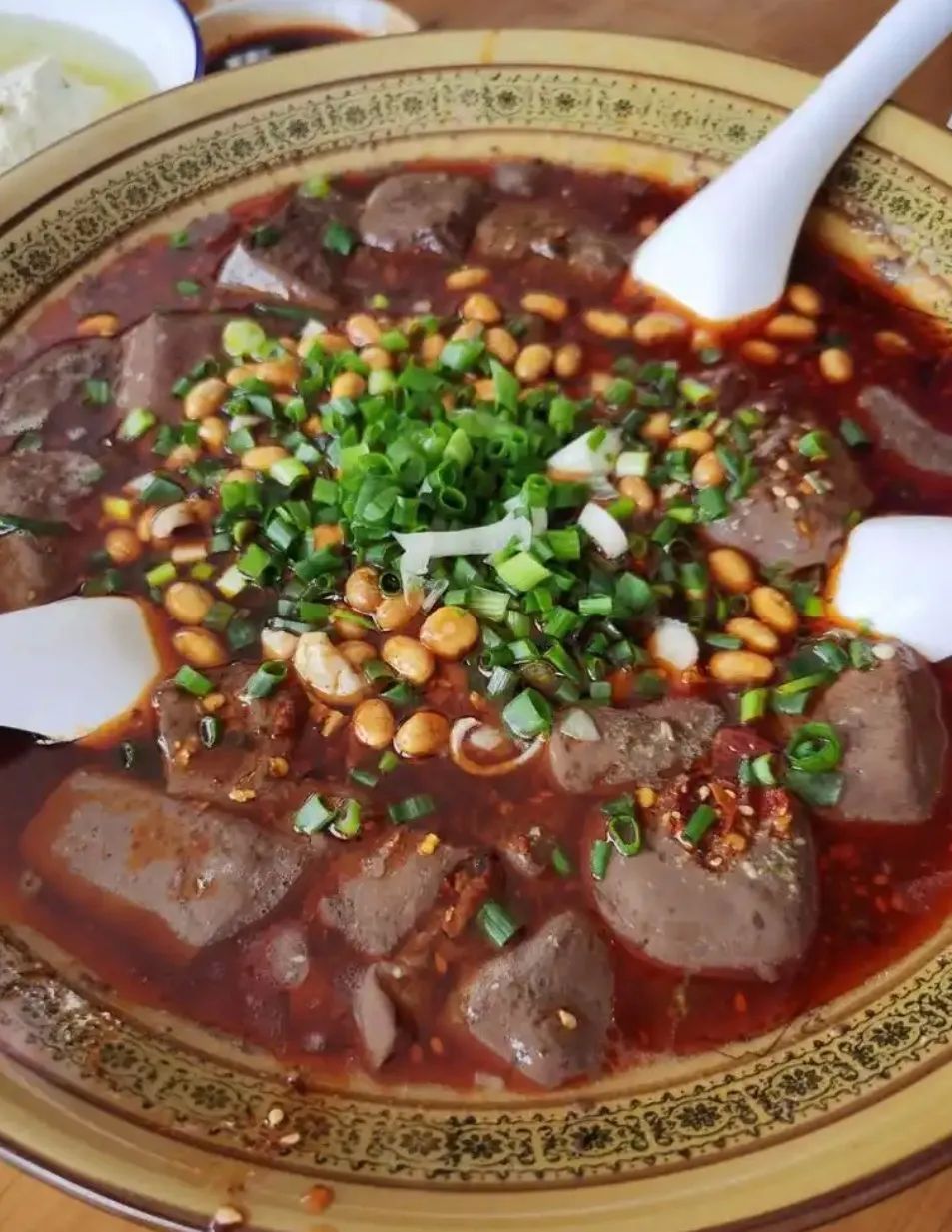 十、肥肠血旺,广汉的肥肠血旺也是本地一绝,肥肠软糯有嚼劲,血旺细嫩入味,再配上一碗米饭那就是十足的满足感。推荐桂林路的张啰嗦鲜血旺,店铺不大却是几十年的老店,味道绝对巴适得很,还有他家的红油鸡片跟海带蹄花,也是必点菜。