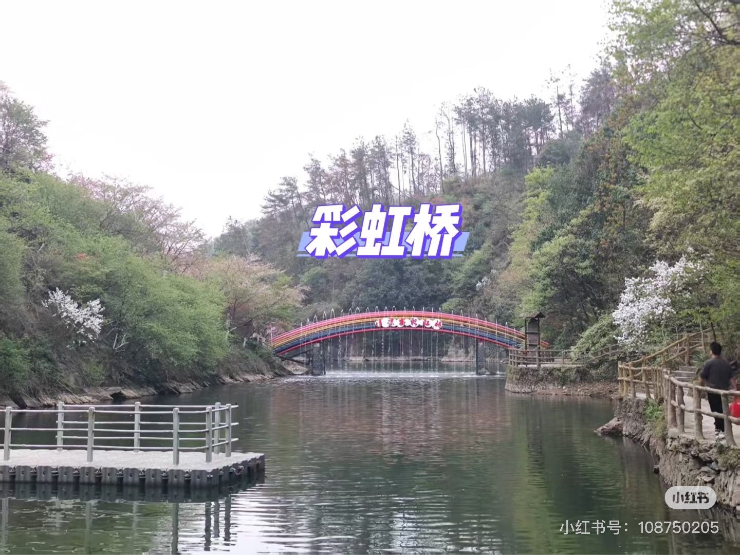 清凉寨景区入口几步就到通天湖,可以选择坐船赏湖景,不过徒步 10min 途经彩虹桥,拍照出片,建议步行。