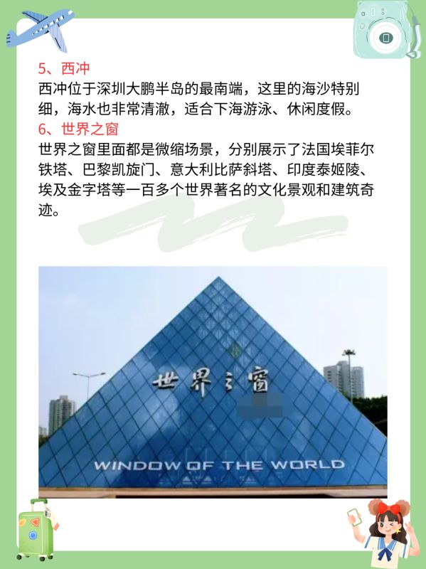 - 部分景点需提前预约或购票(如世界之窗、东部华侨城)。